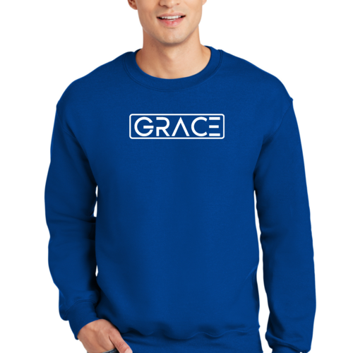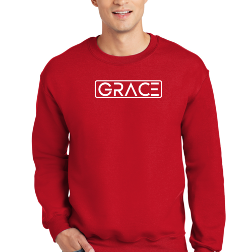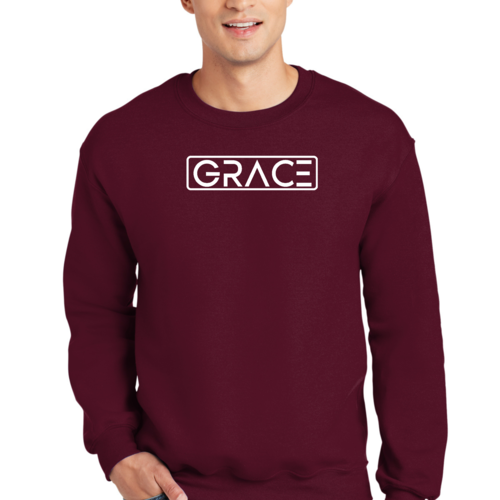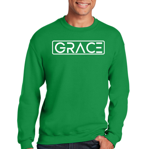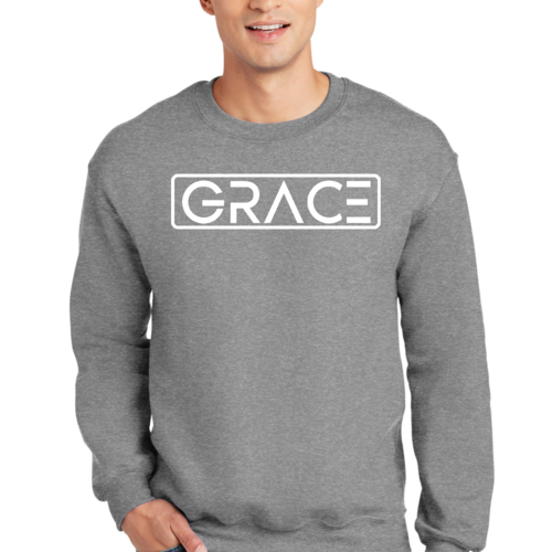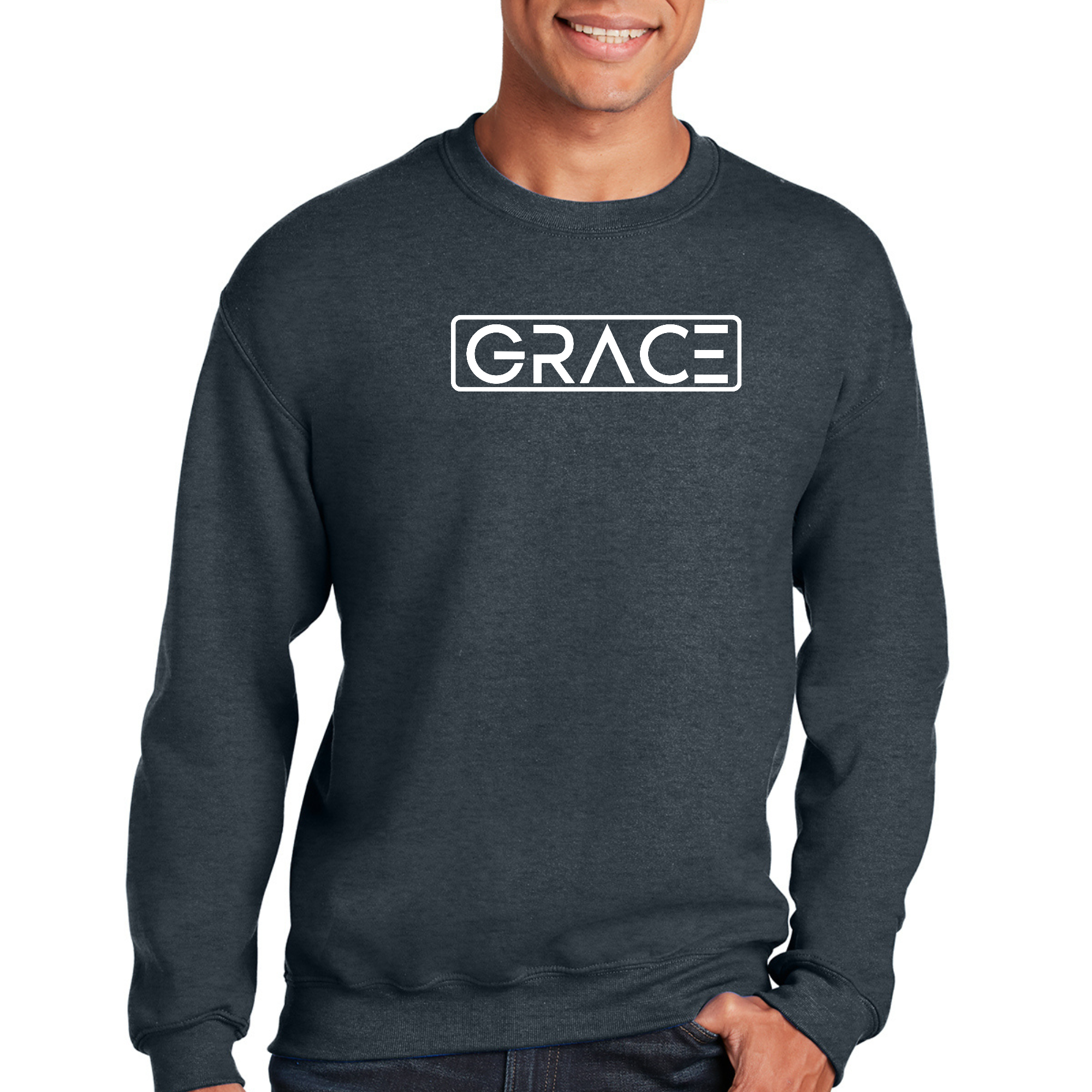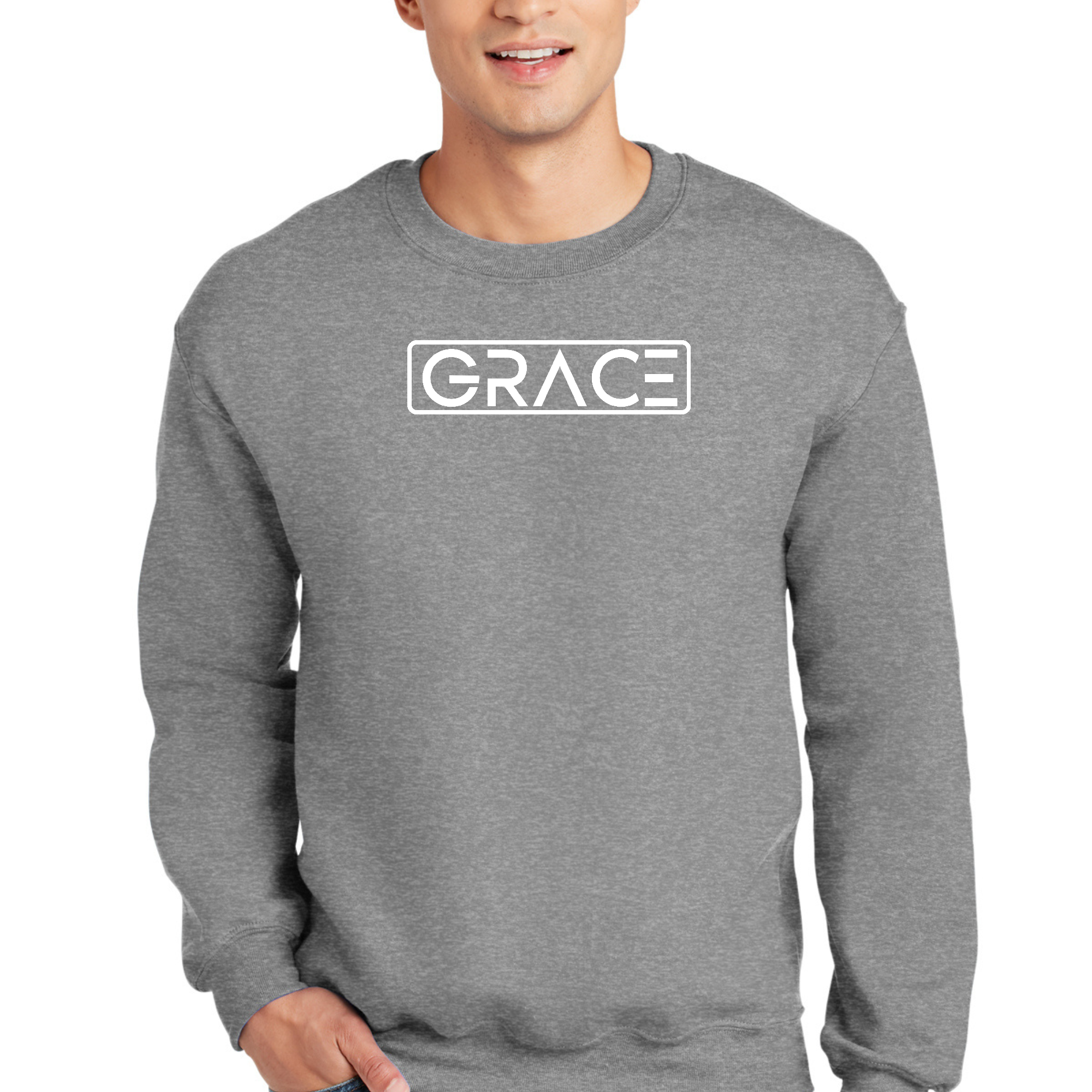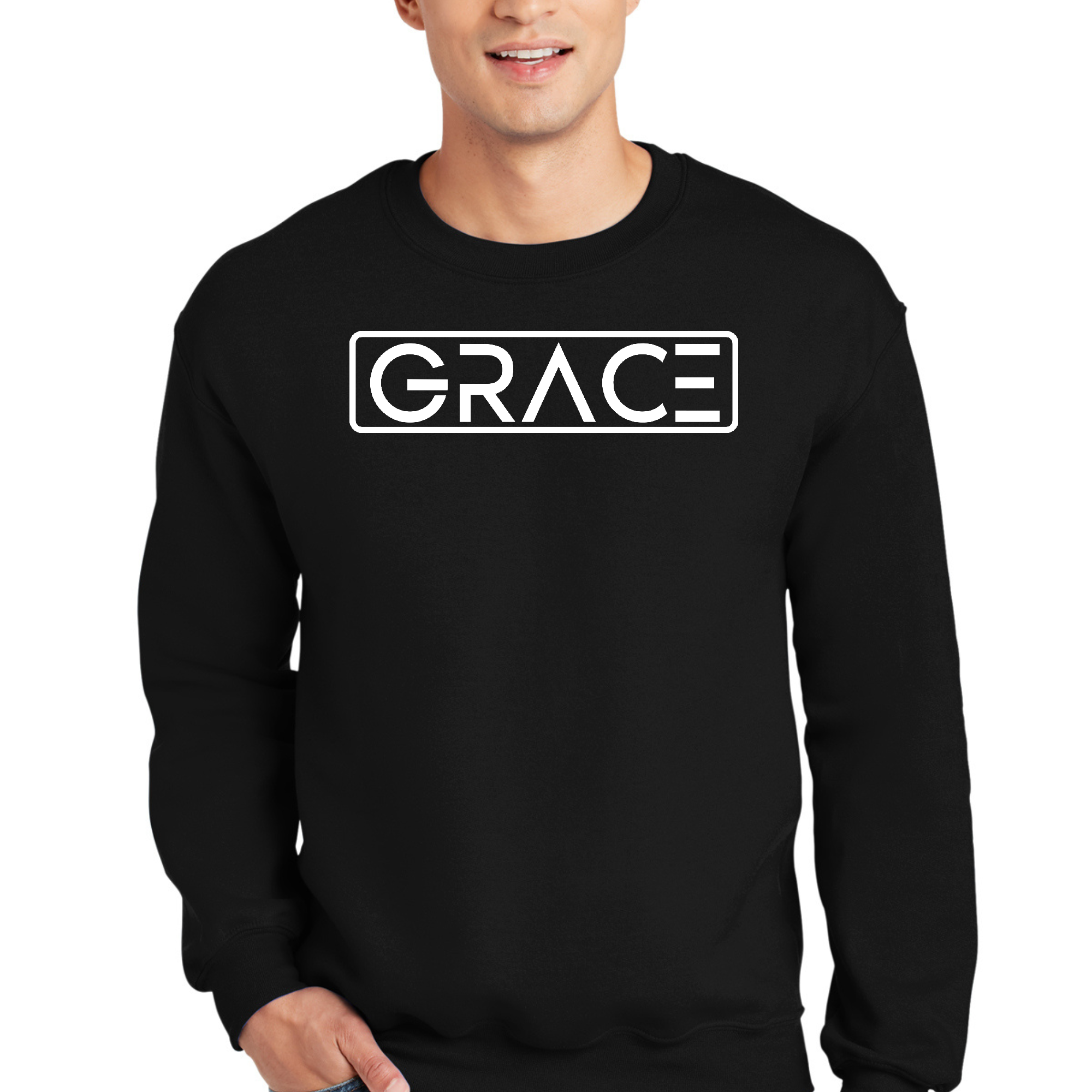 Adult unisex long sleeve sweatshirt featuring Grace Christian inspirational graphic design, showcasing comfort and style.