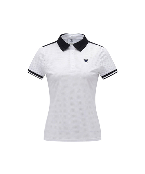Women All Ventilation Collar Short T-Shirt - White is the perfect blend of style and functionality for the modern golfer. Crafted from a high-quality fabric blend of 73% nylon and 27% polyurethane, this t-shirt ensures maximum breathability and comfort during your game. The sleek white color adds a touch of elegance, making it suitable for both the golf course and casual outings.
