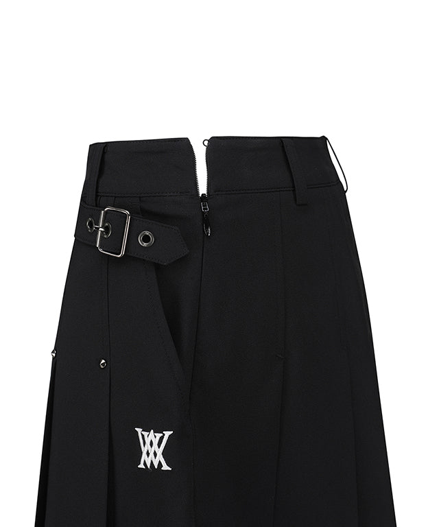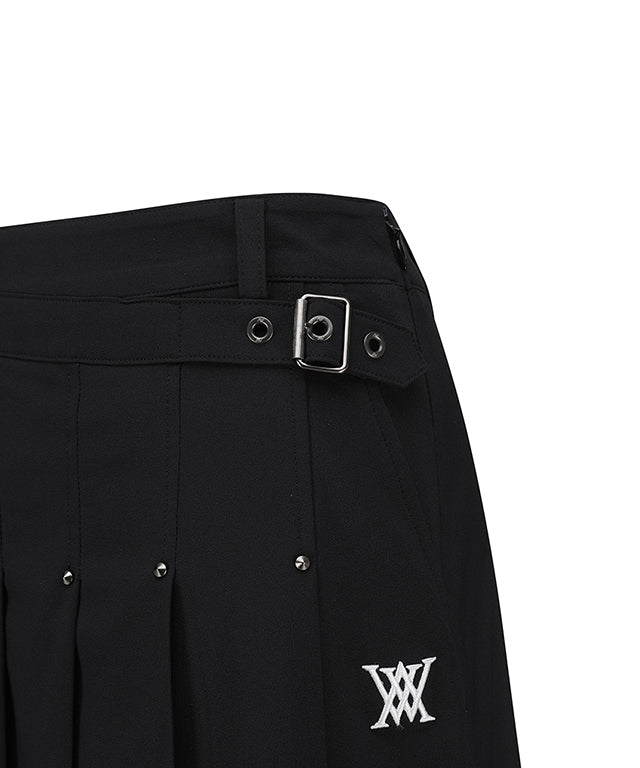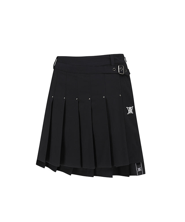 One of the standout features of this skirt is the buckle decoration at the waist, which adds a touch of elegance and sophistication. The stud points further enhance the design, making it a fashionable choice for both on and off the golf course. The skirt also includes a logo tape at the hem, which is visible during your swing, adding a sporty flair to your outfit.