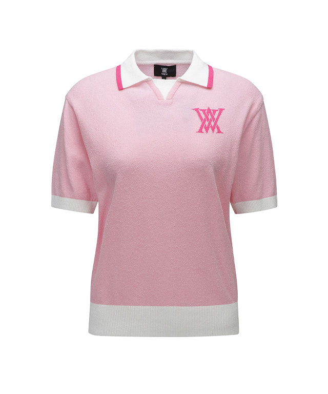 Dropship ANEW Golf: Women Chest Big Logo Collar Short Sweater - Light Pink