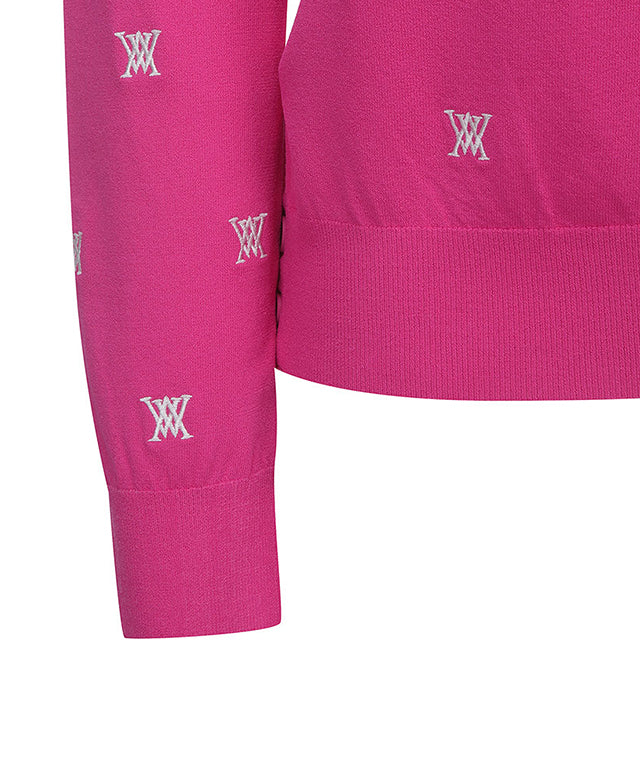 Women Monogram Logo Point Pullover Sweater - Pink is the perfect blend of style and comfort for the modern woman. This pullover sweater is designed with a refreshing pink color that is ideal for the spring and summer seasons. Made from a high-quality yarn that minimizes skin contact, it ensures a cool and comfortable fit, making it a great choice for both on and off the golf course.