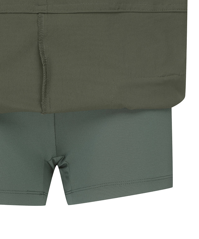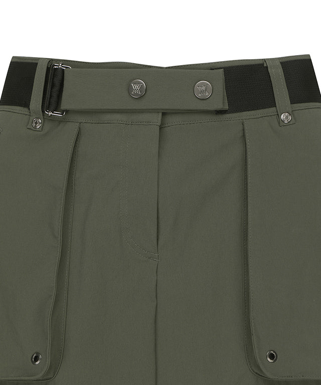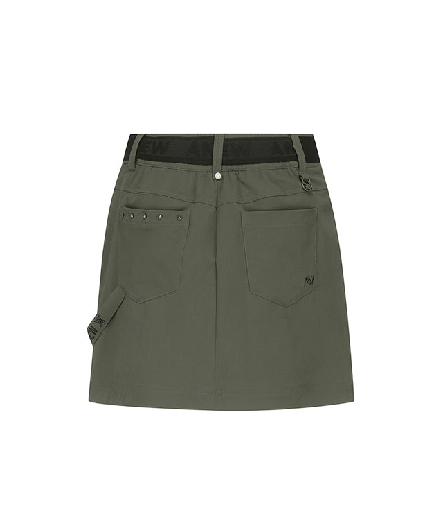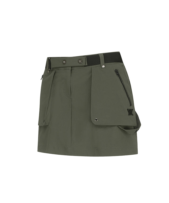 Khaki ANEW Golf Women Out Cago Pocket Skirt featuring a unique pocket design and webbing tape waist.