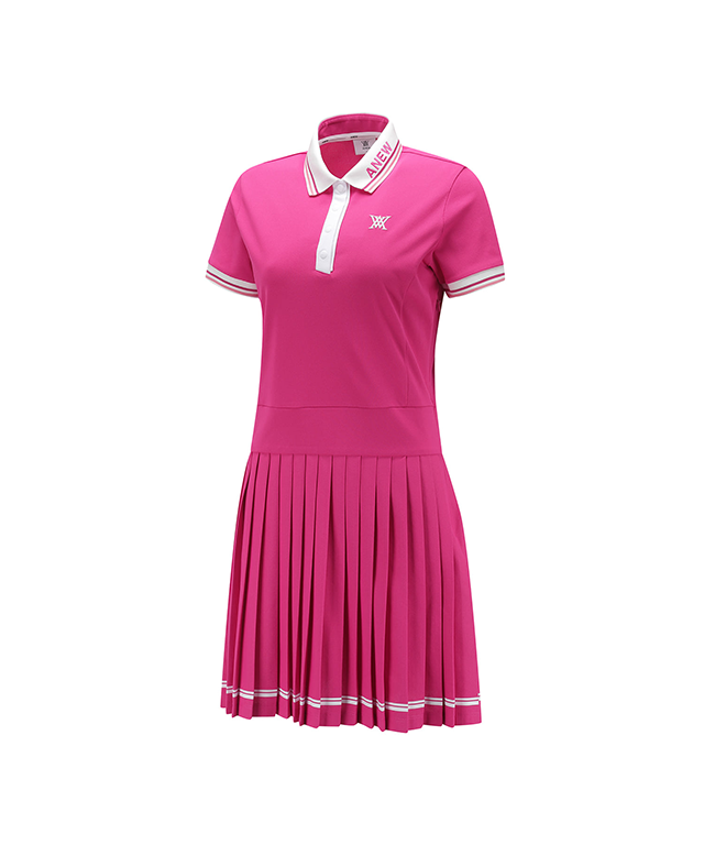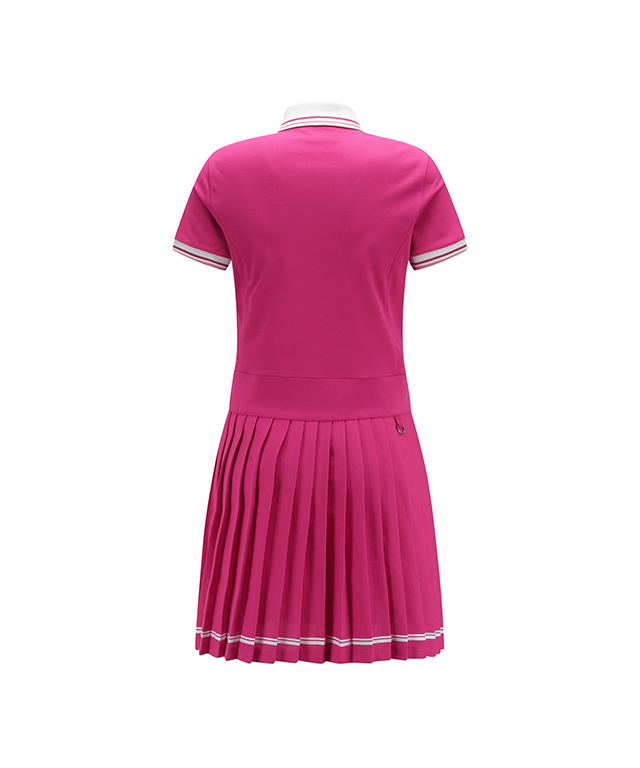 This dress features a chic pleated skirt that adds a touch of elegance to your golfing attire. The vibrant hot pink color not only makes a bold statement but also enhances your visibility on the course. Whether you're teeing off or enjoying a casual day out, this dress is designed to turn heads.
