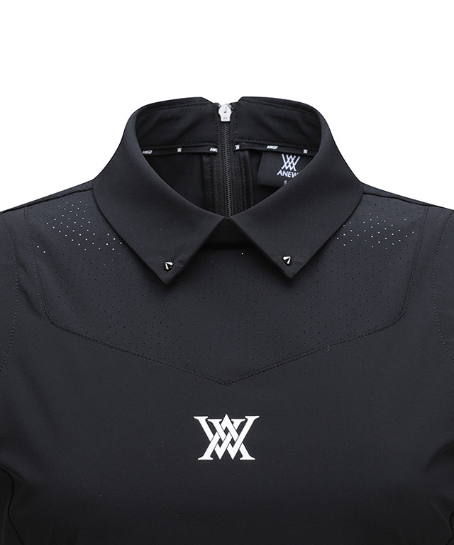 This one-piece features a square-shaped perforated design on the upper chest, enhancing breathability while maintaining a chic look. The princess line on the armhole and the Anew logo band at the waist create a flattering silhouette that accentuates your figure. The flare hem is designed with pleats that add volume, providing a dramatic flair during your swings, ensuring you look great while playing your best.
