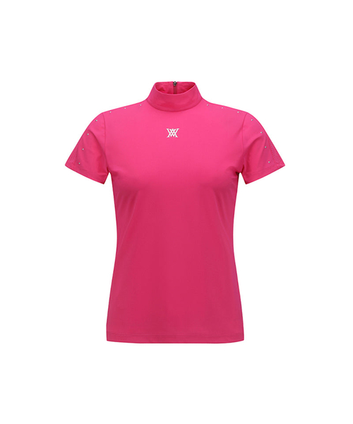 The ANEW Golf T-shirt reinterprets classic styles with a contemporary twist. The half-high-neck design is not only fashionable but also provides a flattering silhouette. The addition of a hot fix of nickel color from the shoulder to the sleeve, along with a silver thread detail on the chest, elevates the overall look, making it a versatile piece that can be dressed up or down.