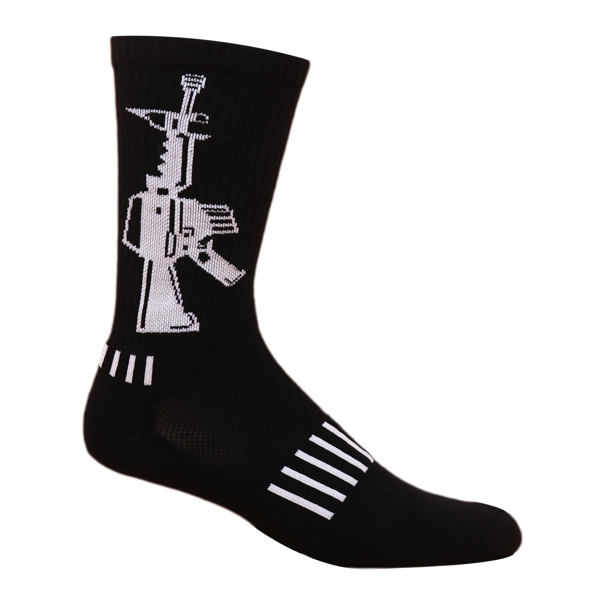 Introducing the Assault Crew Socks, a perfect blend of style and performance for those who take pride in their American heritage. These socks feature a striking M16 design that showcases your love for American firepower while providing the comfort and durability you need for any activity. Whether you're hitting the gym, going for a run, or just lounging at home, these socks are designed to keep your feet feeling great.