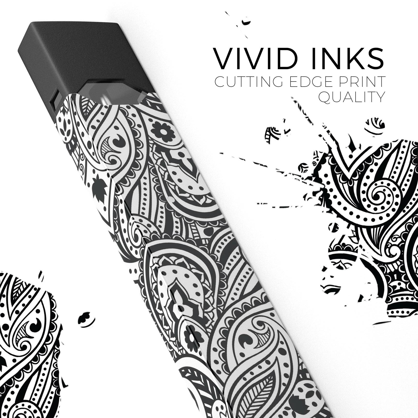 Introducing the Black and White Aztec Paisley Premium Decal Protective Skin-Wrap, the perfect accessory for your JUUL vaping device. This stylish skin not only enhances the appearance of your device but also provides essential protection against scratches and wear. With its unique design, you can easily stand out from the crowd while enjoying your vaping experience.