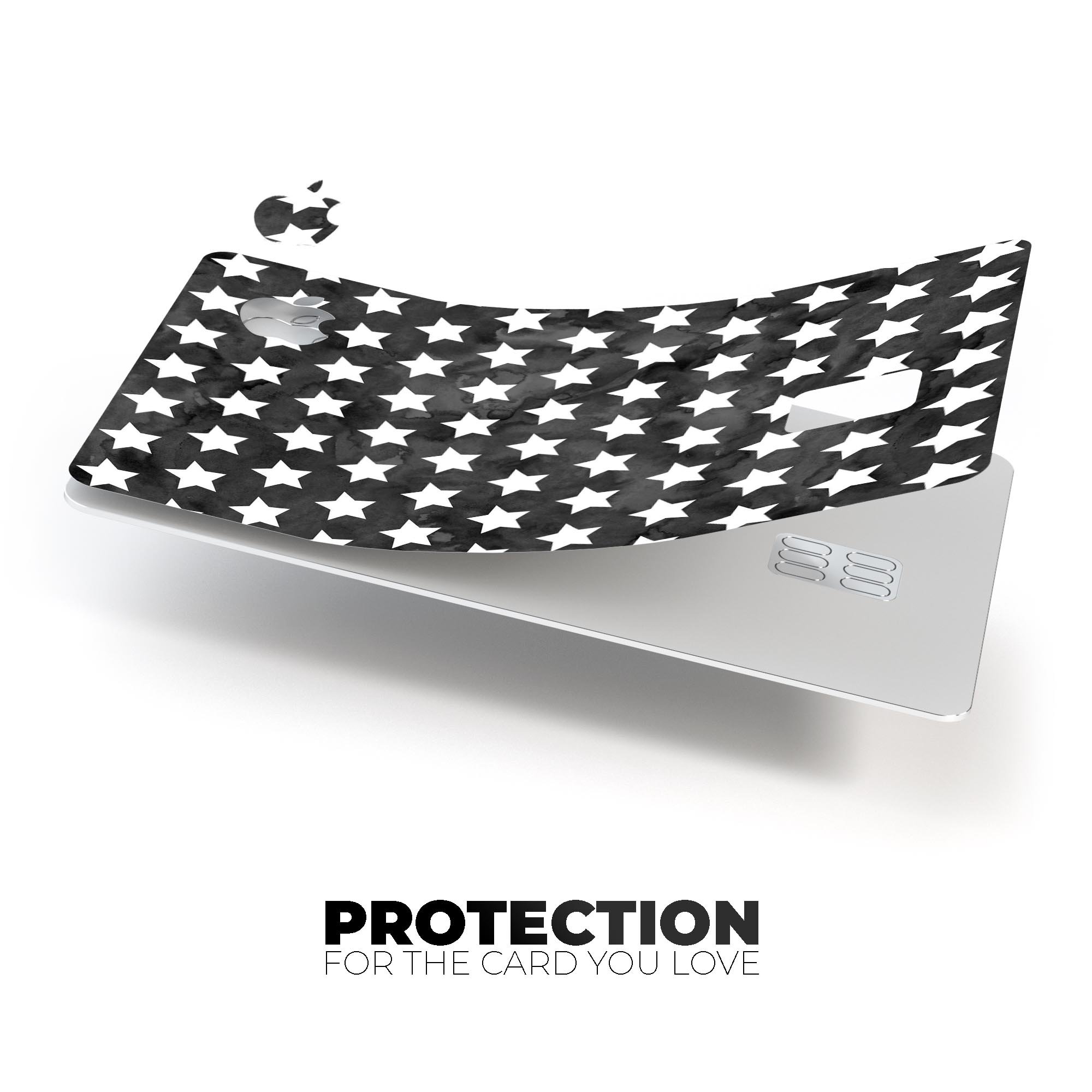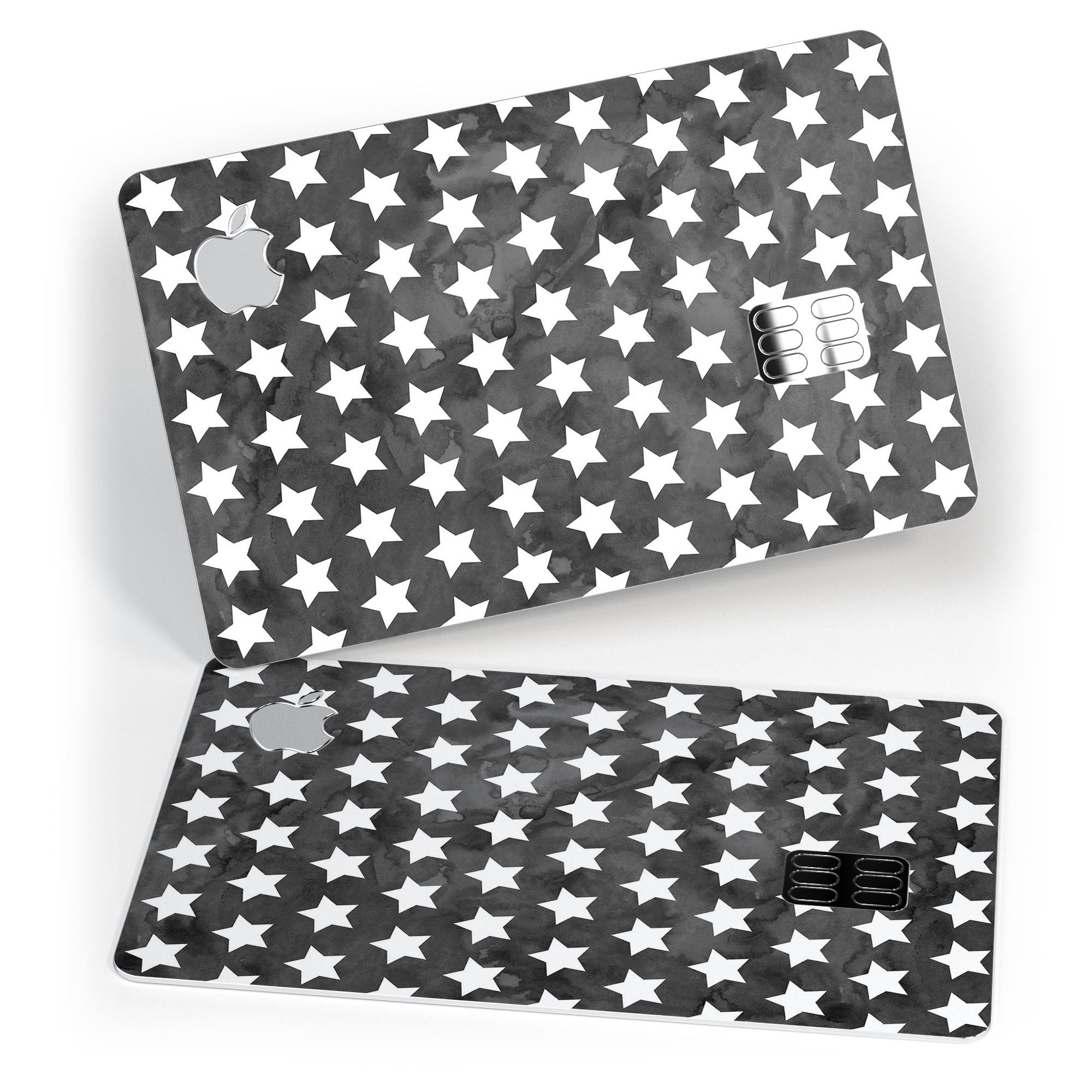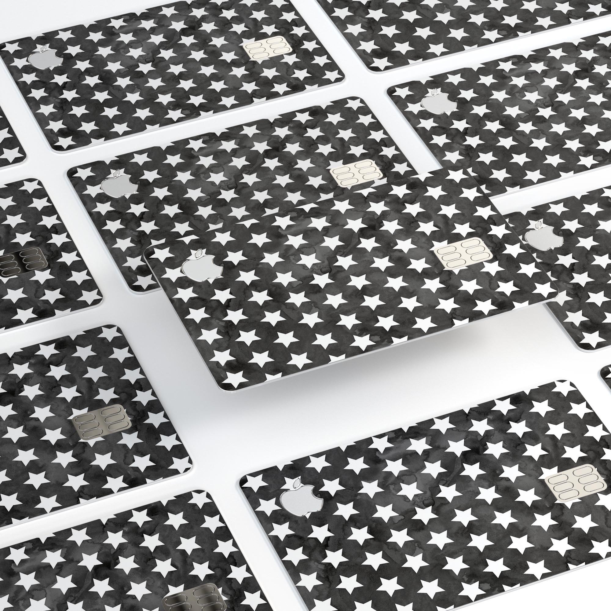 Black and White Watercolor Stars decal skin for Apple Card, showcasing a stylish design with premium vinyl material.