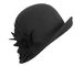 Black felt cloche hat with large hand-made lace flower. This bucket hat is part of latest Max Alexander winter racing collection.