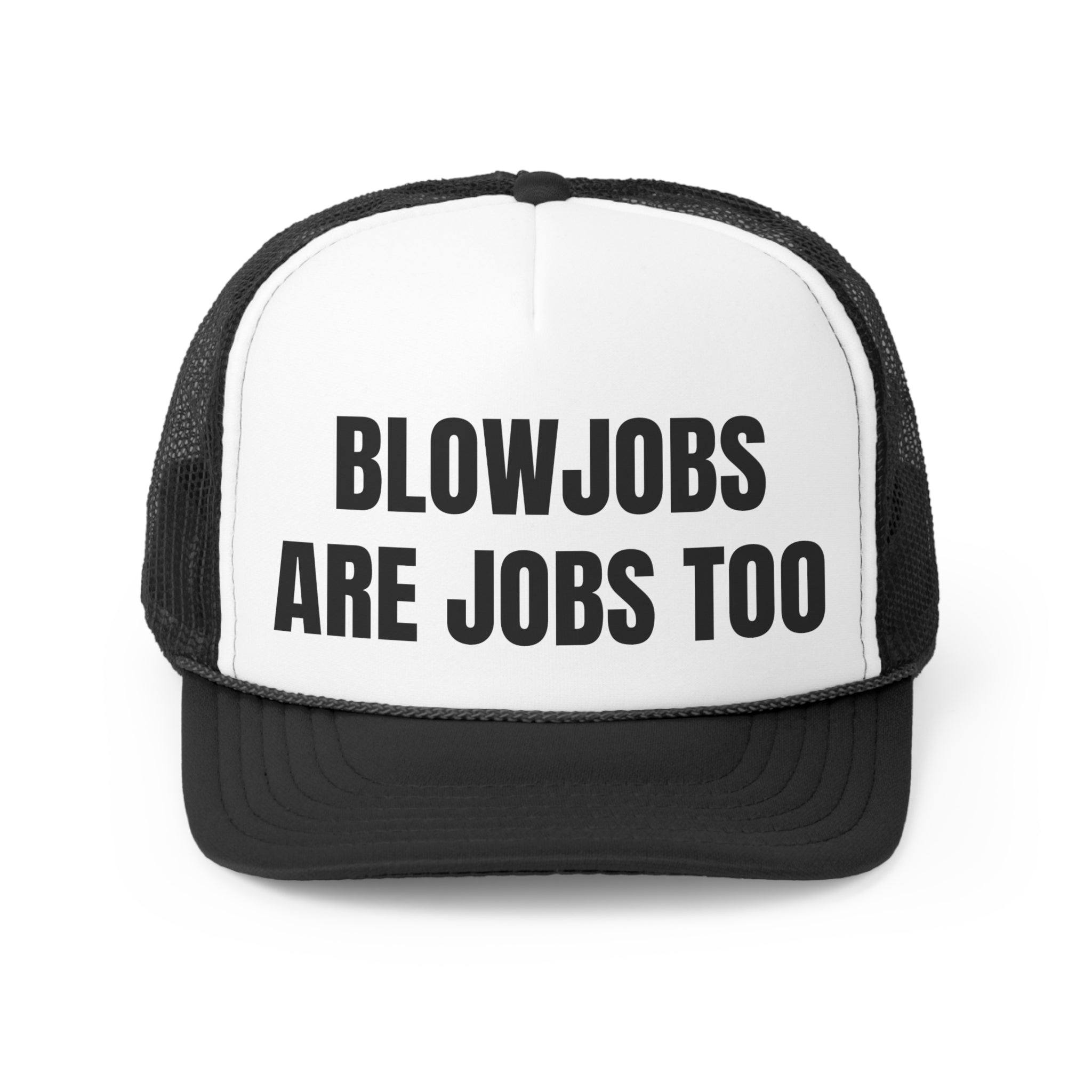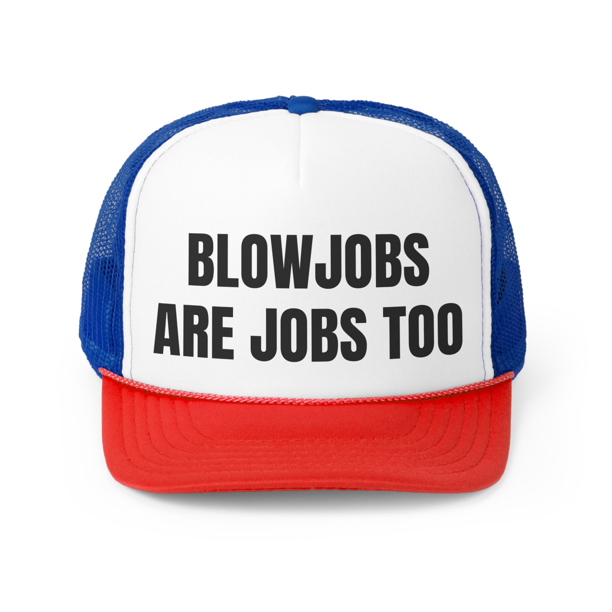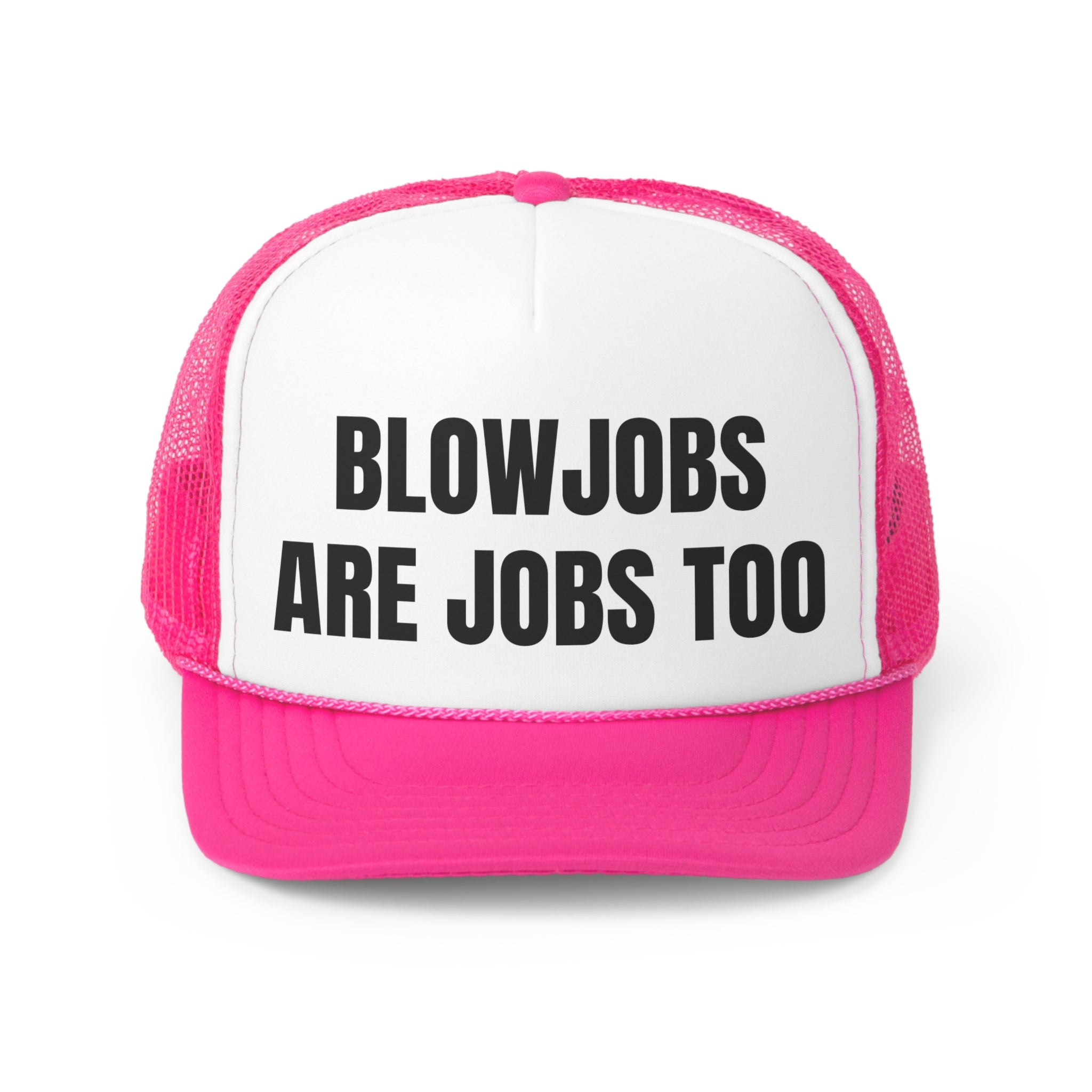 Introducing the BlowJobs Are Jobs Too Funny Trucker Hat, a unique accessory that combines humor and style. This trucker hat is designed for those who appreciate a good laugh and want to make a statement wherever they go. With its eye-catching design, this hat is sure to turn heads and spark conversations.