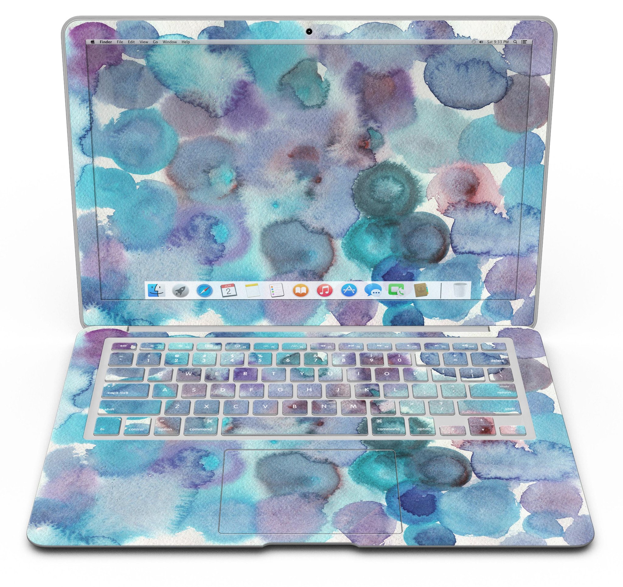In addition to its aesthetic appeal, the Blue 62 Absorbed Watercolor Texture skin offers practical protection for your MacBook Air. It acts as a barrier against scratches, dust, and minor impacts, keeping your device looking new for longer. This is especially important for those who frequently travel or use their laptops in various environments.