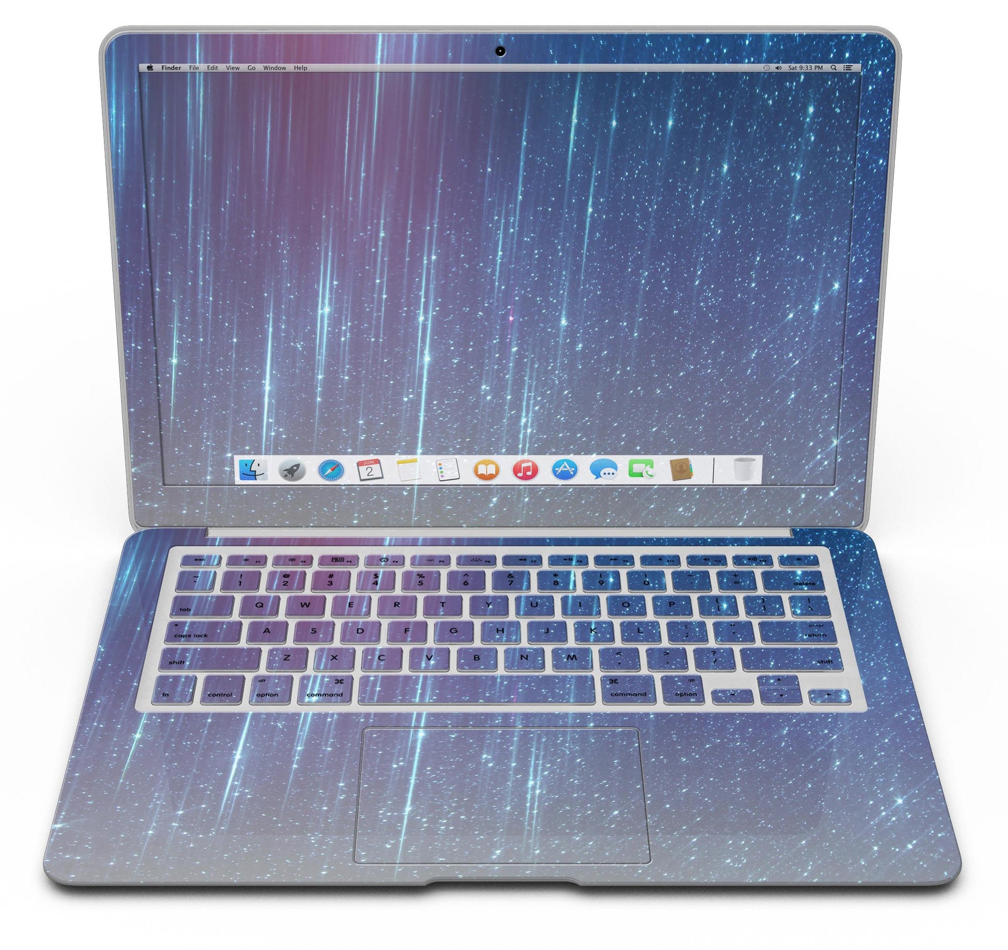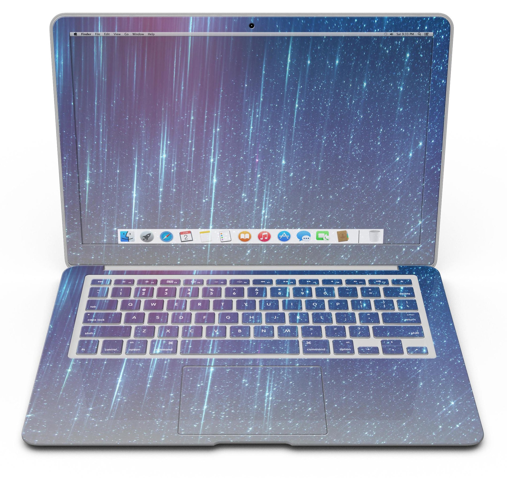 Blue and purple streaked vinyl skin for MacBook Air, showcasing a stylish design that protects against scratches.