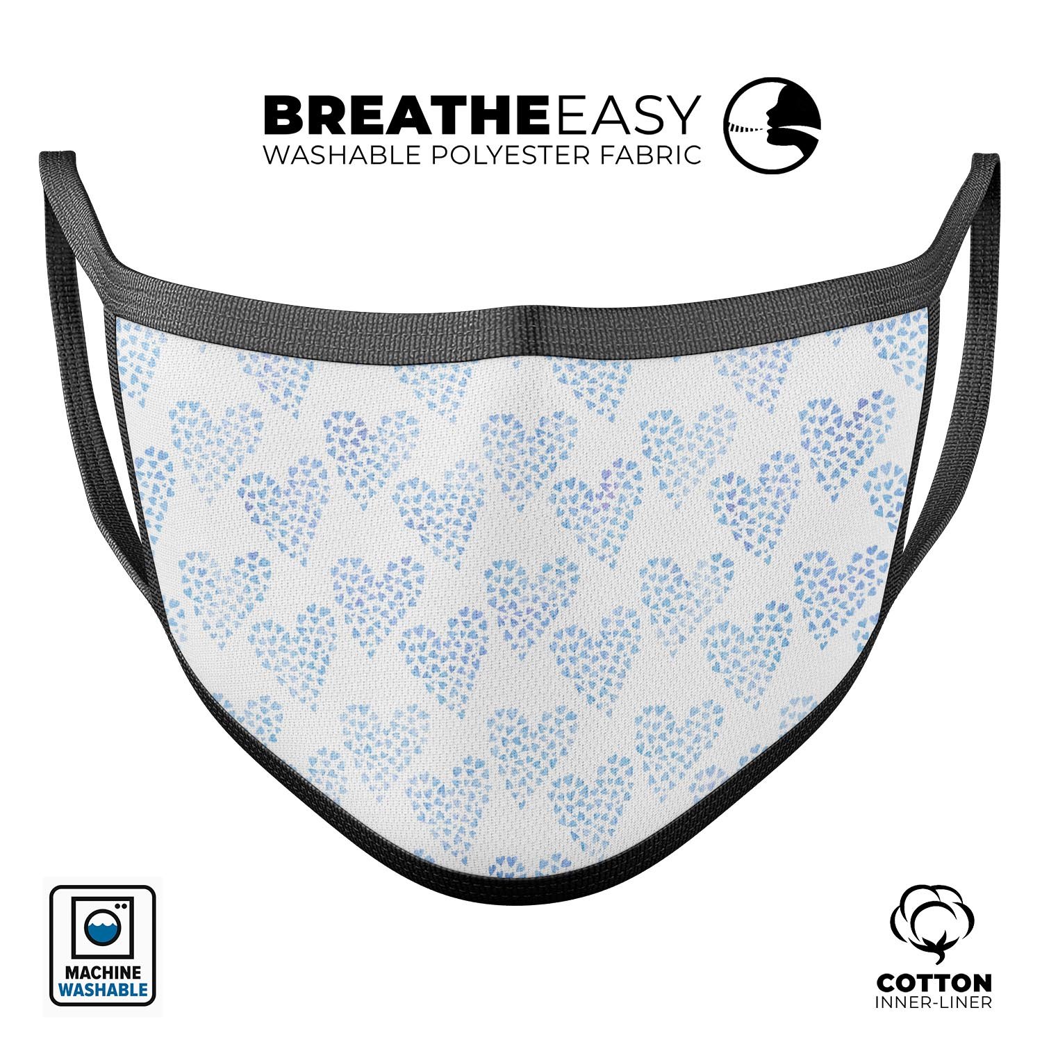 Our Blue Watercolor Hearts Pattern mouth cover is designed for longevity. It is 100% machine or hand washable, making it a sustainable choice for your daily needs. Each mask is completely reusable, allowing you to wash it as often as you like without worrying about fading. The special dye-sublimation technique used in printing ensures that the vibrant design remains intact, even after multiple washes.
