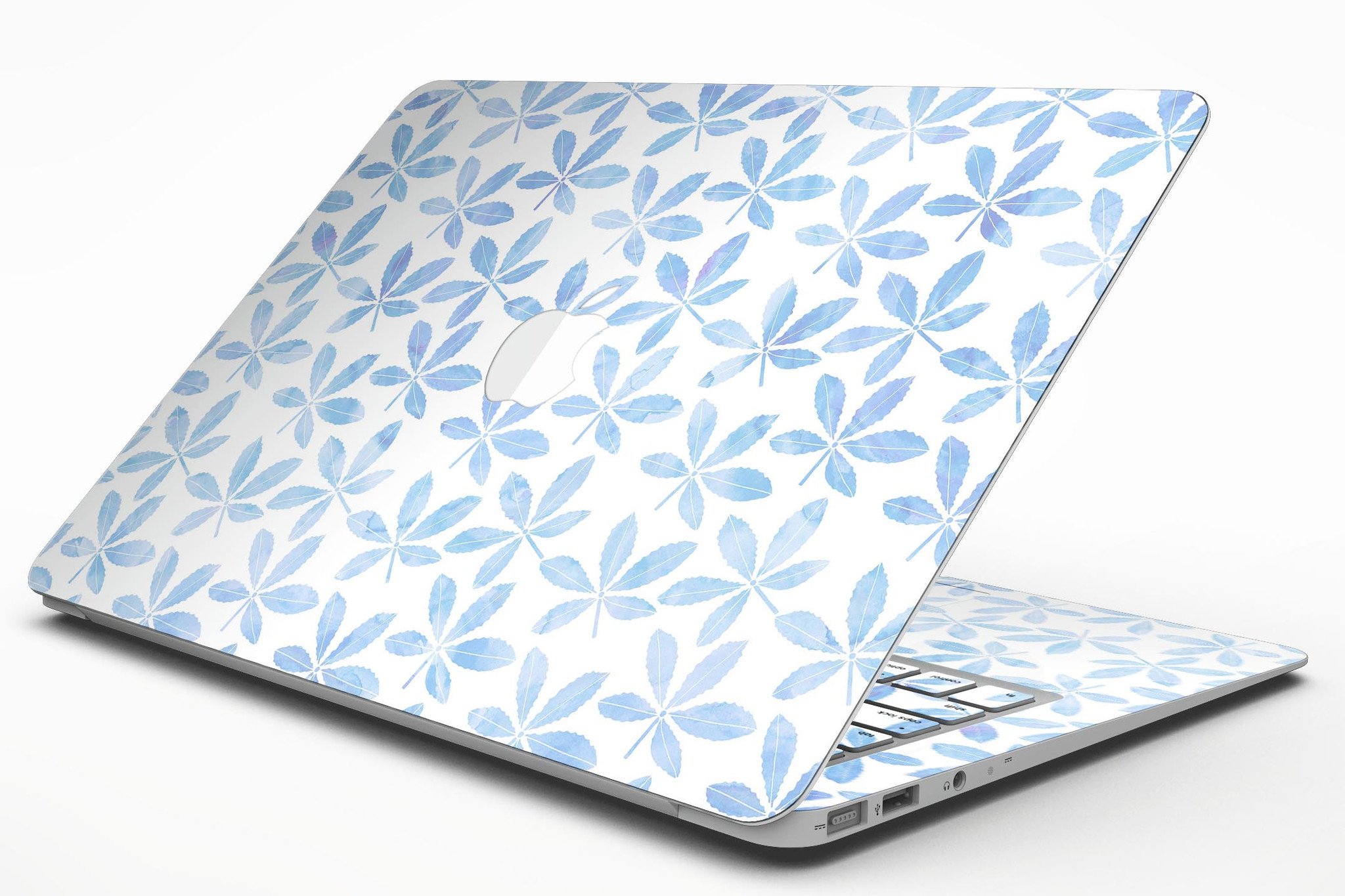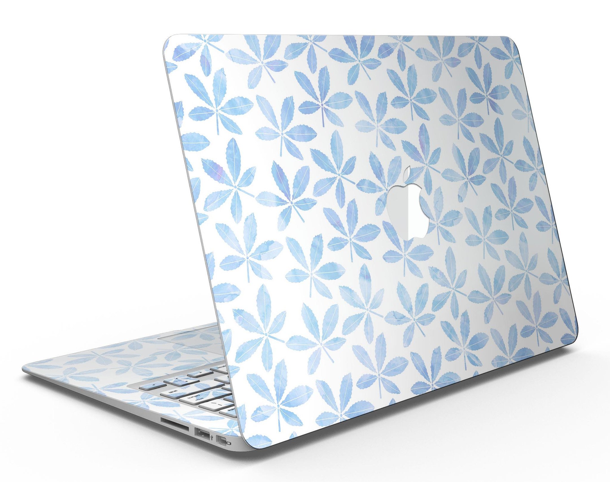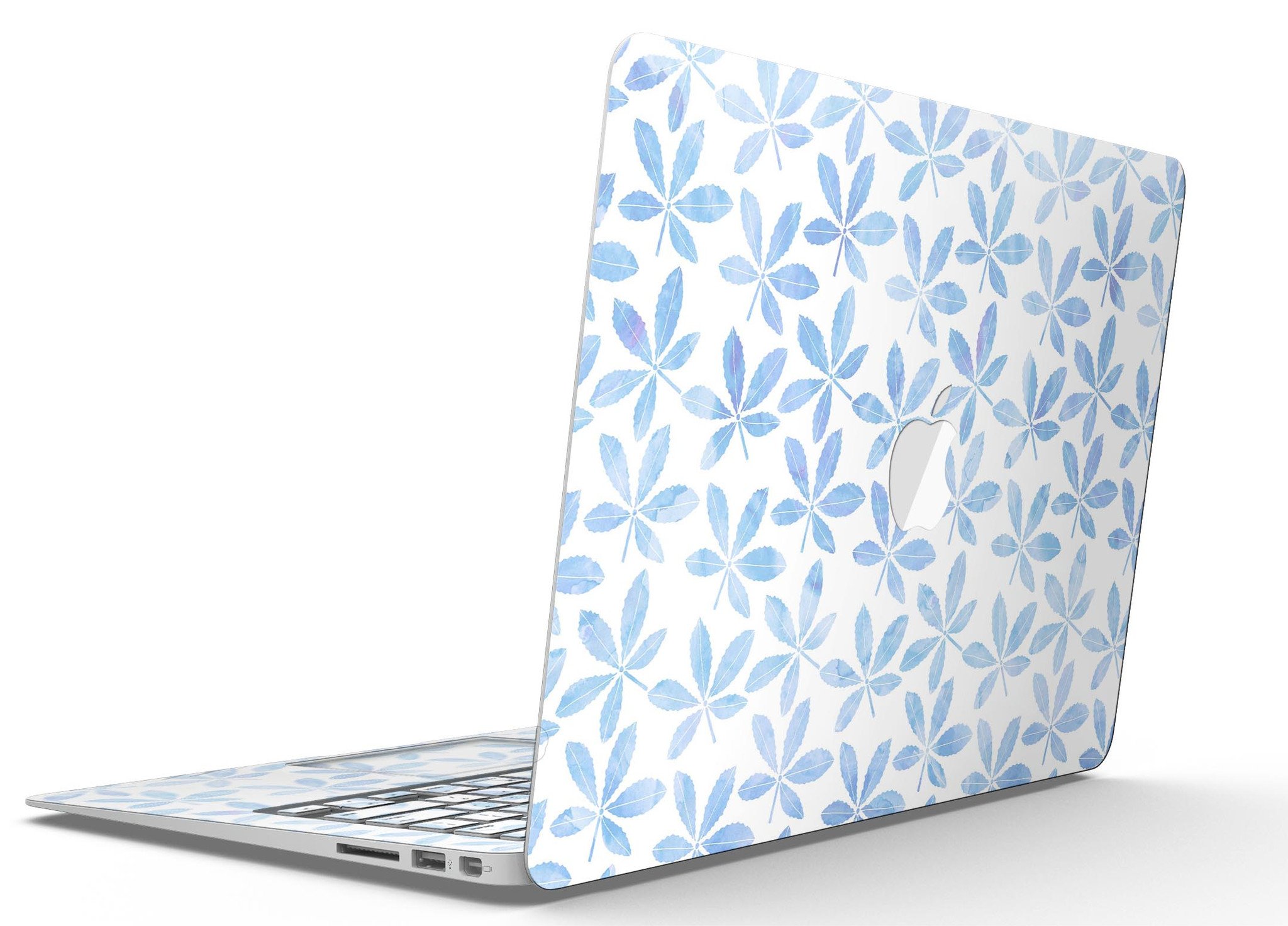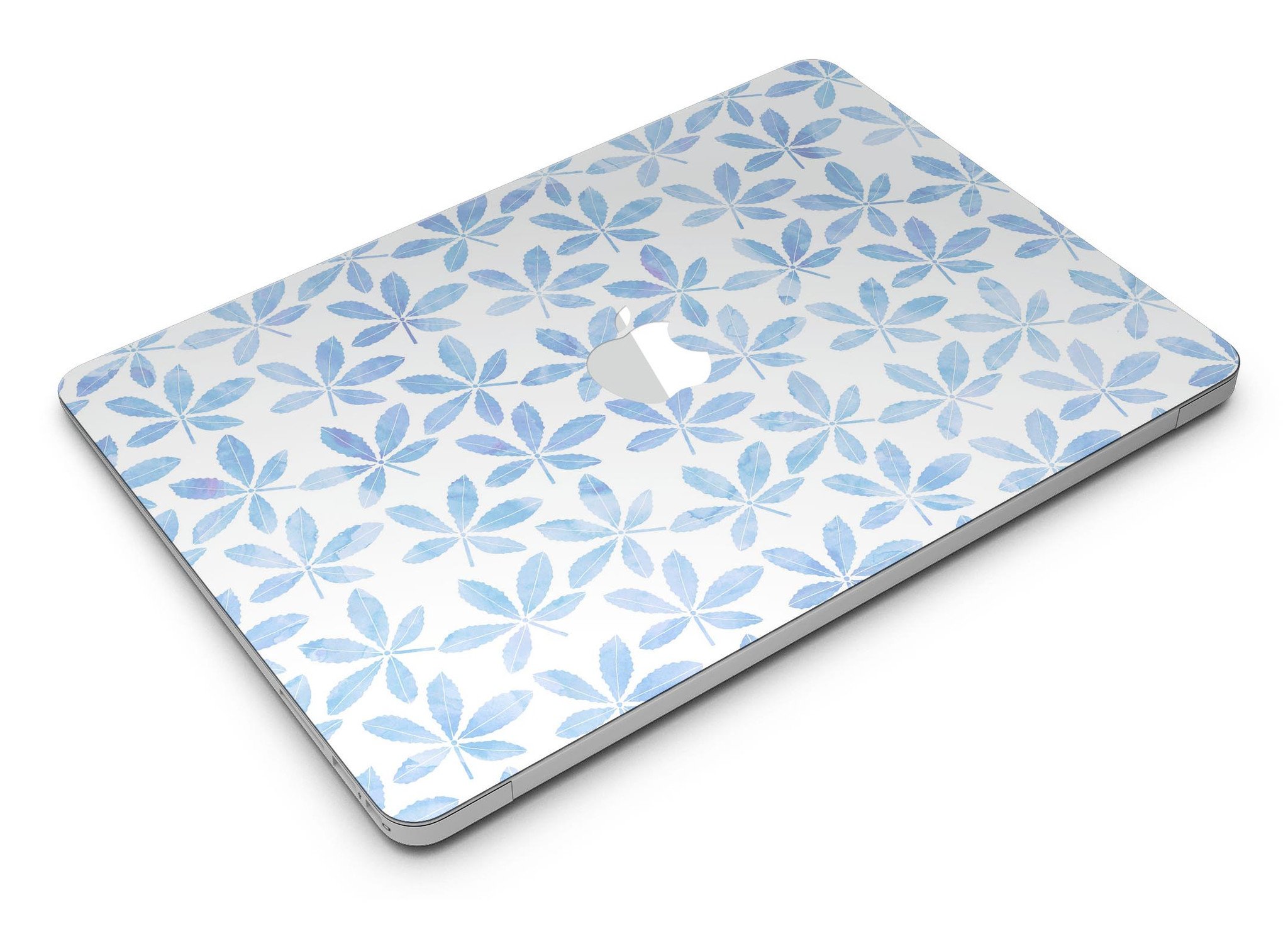 Blue Watercolor Leaves skin kit for MacBook Air, showcasing a vibrant design with intricate leaf patterns on a sleek surface.