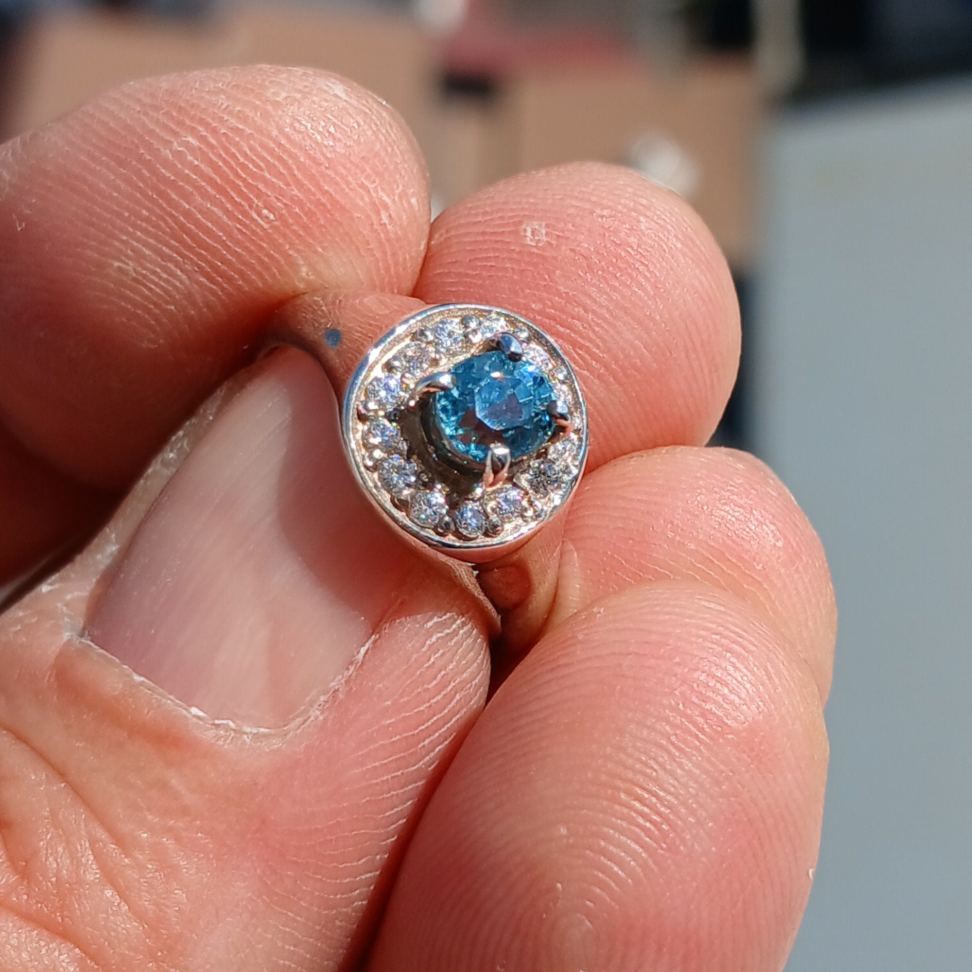 In summary, our Blue Zircon Ring is a stunning piece of jewelry that combines elegance, comfort, and quality. With its natural blue Zircon stone, surrounded by sparkling white CZs and crafted in polished sterling silver, this ring is perfect for anyone who loves unique and eye-catching accessories. Don't miss out on the opportunity to own this beautiful ring or to gift it to someone special.