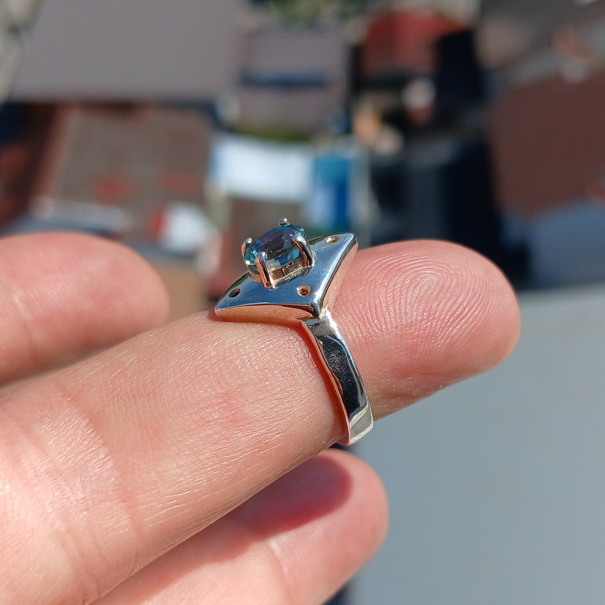 The minimalist design of this ring makes it a versatile accessory that can be worn for various occasions, from casual outings to formal events. Its simplicity allows the natural beauty of the blue Zircon gemstone to shine through, making it an ideal choice for those who appreciate understated elegance.