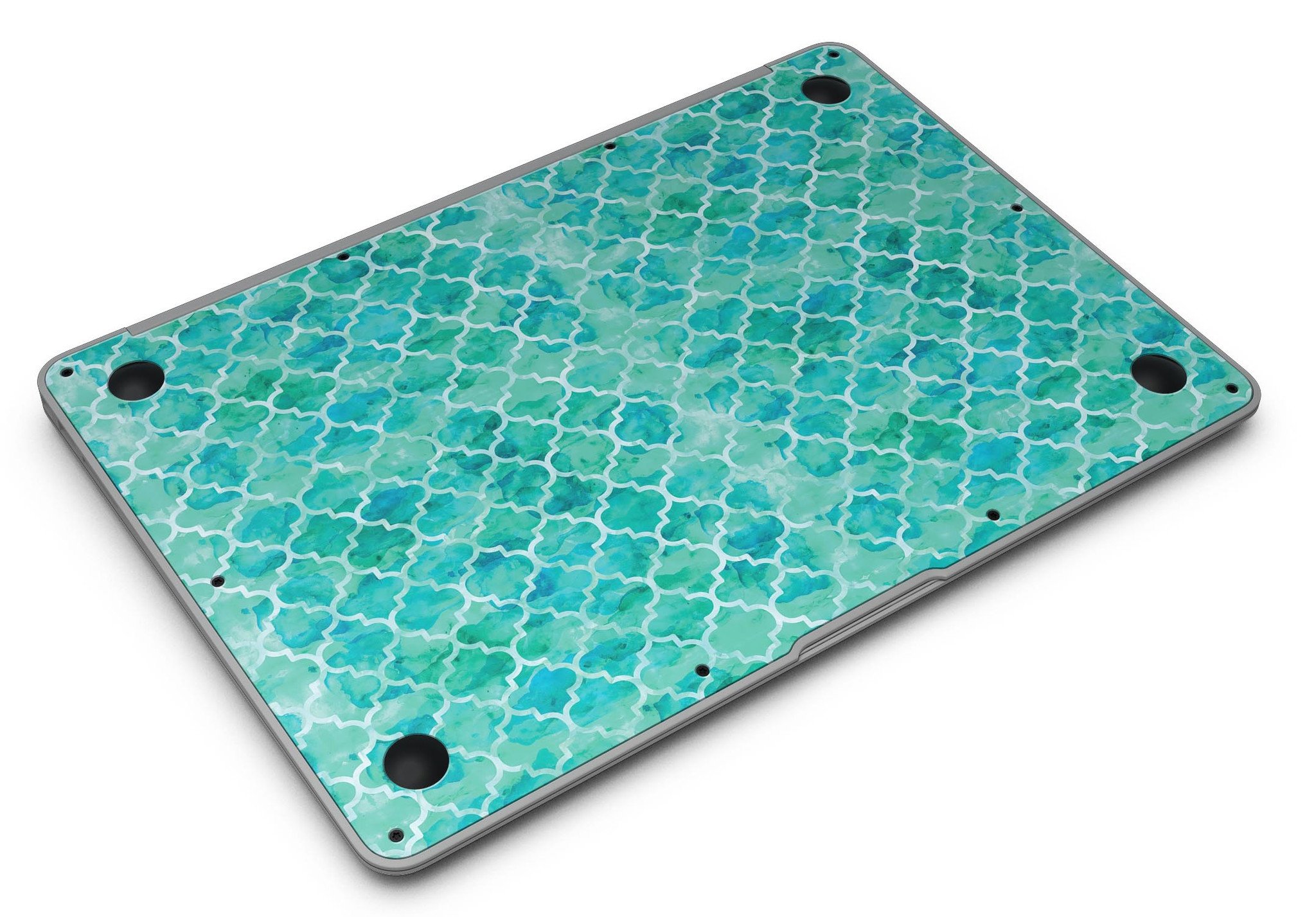 In addition to enhancing the look of your MacBook Air, the Blue-Green Watercolor Quatrefoil skin also serves as a protective barrier against scratches, scuffs, and other forms of damage. Whether you’re tossing your laptop into a bag or using it on the go, you can have peace of mind knowing that your device is safeguarded from everyday hazards.