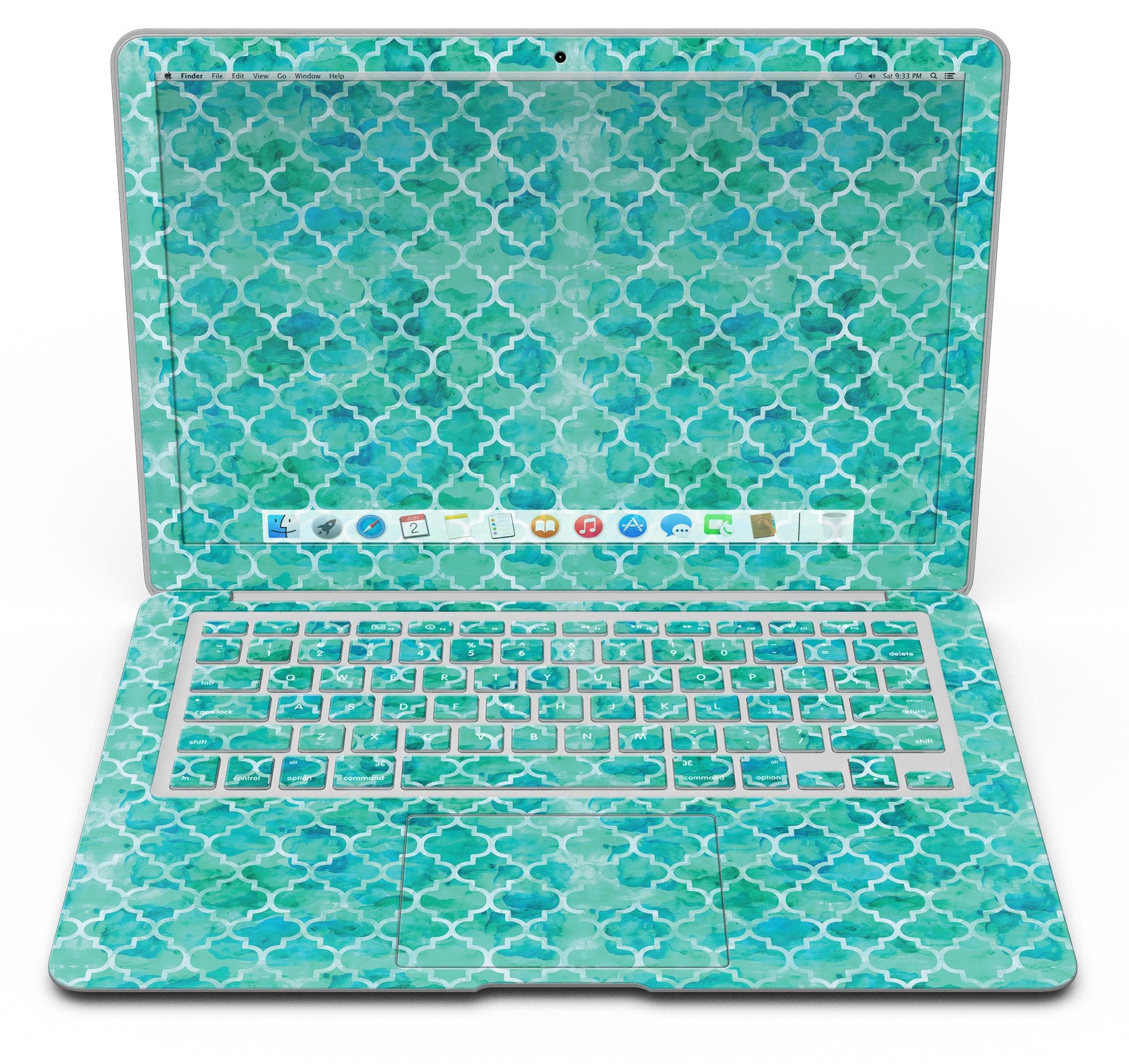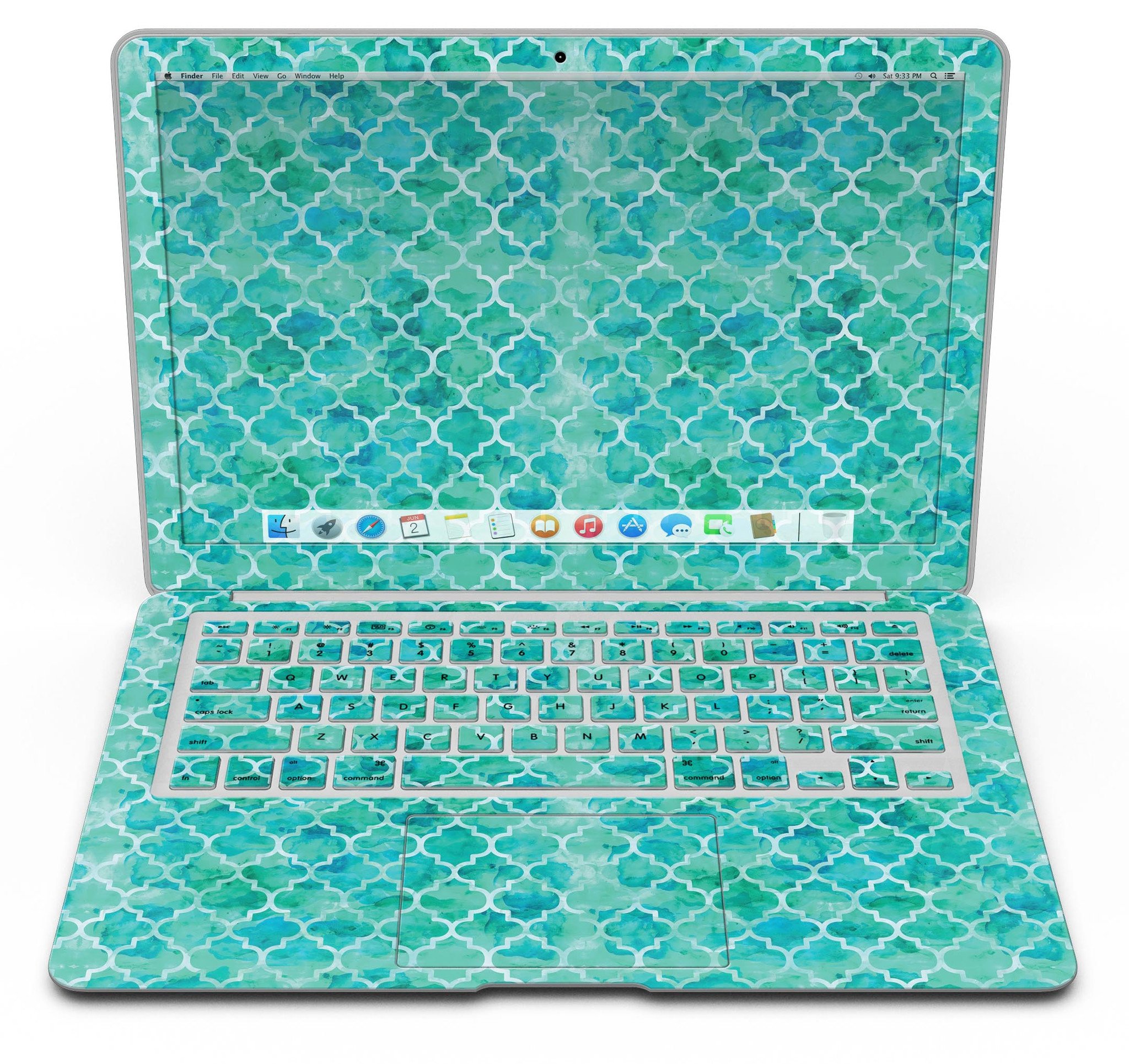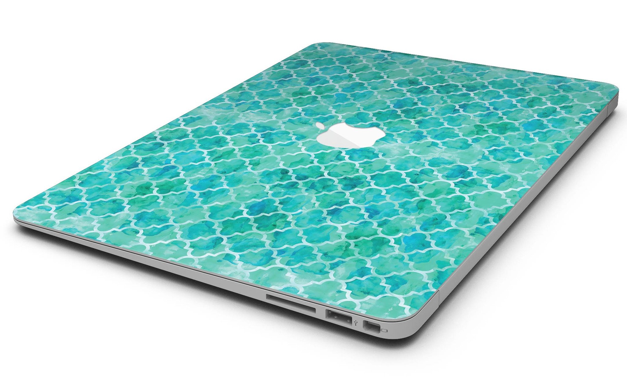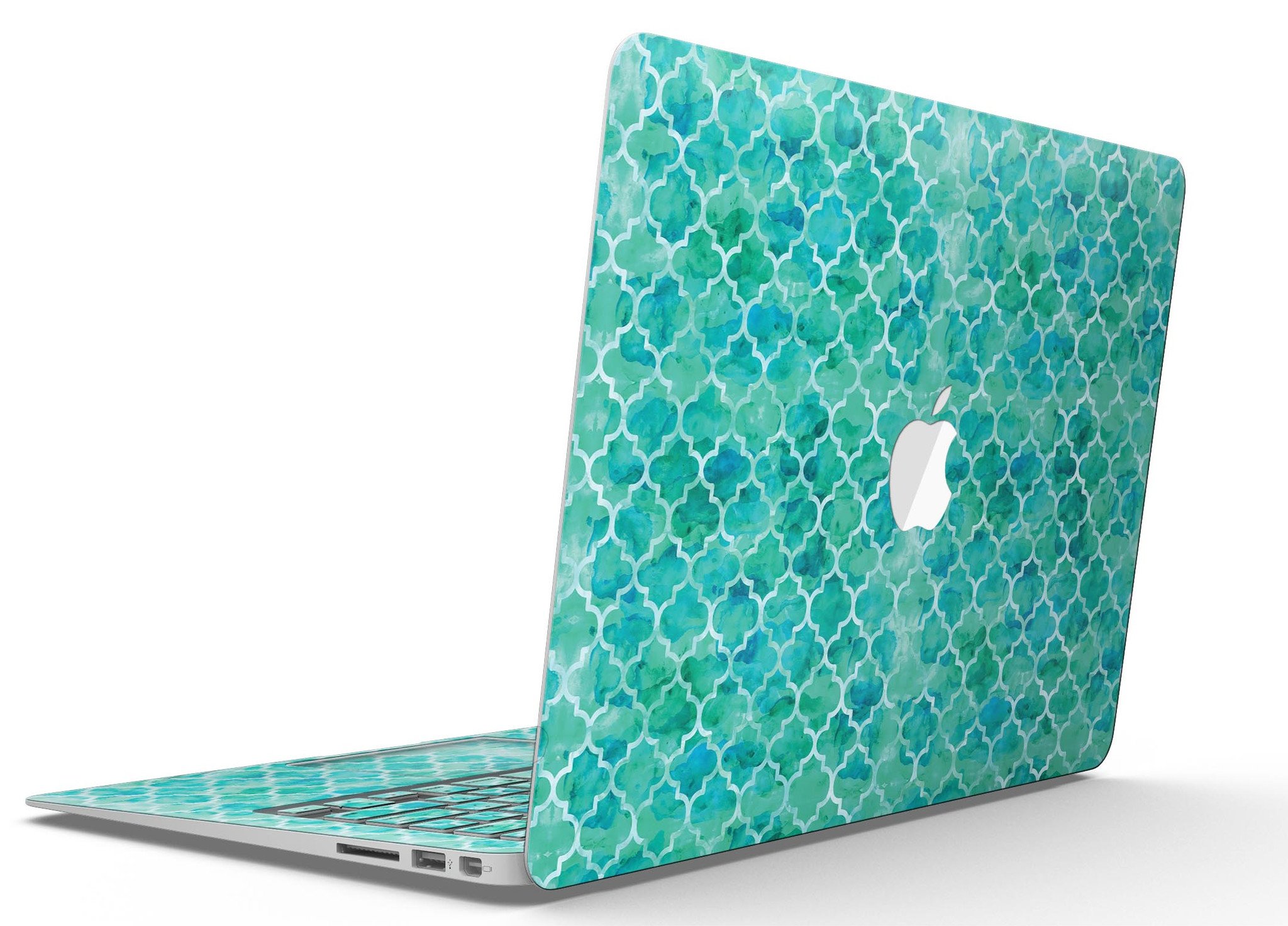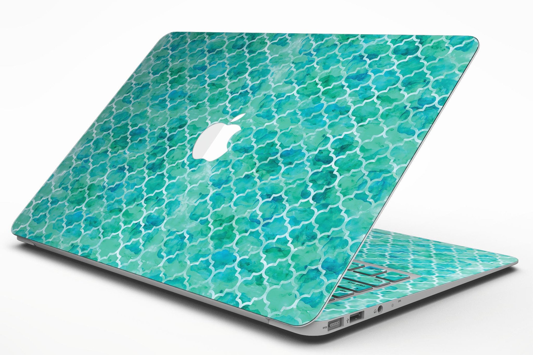 Enhance the aesthetic of your MacBook Air with the stunning Blue-Green Watercolor Quatrefoil Skin Kit. This skin not only adds a unique touch to your device but also provides essential protection against scratches and daily wear and tear. With Design Skinz, you can effortlessly change the look of your favorite device in seconds, ensuring that your MacBook Air stands out from the crowd.