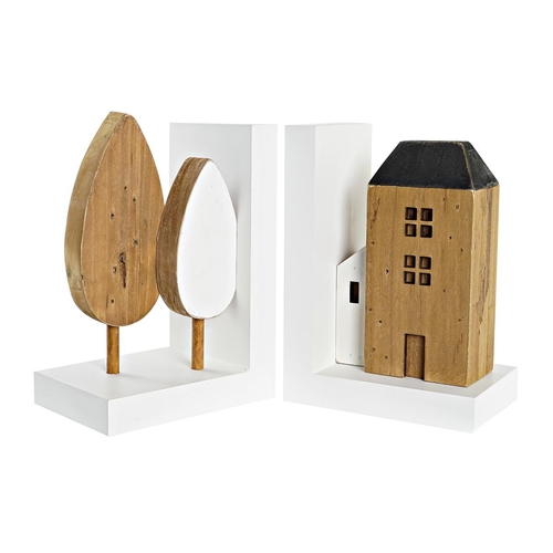 Bookend DKD Home Decor White Wood Houses (14,5 x 10 x 20 cm) at the best price.