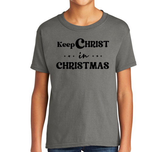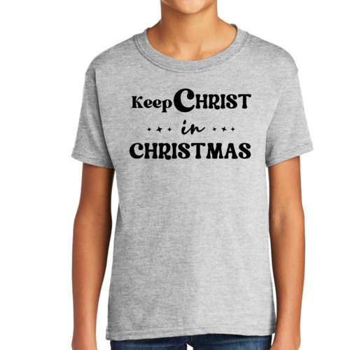 The message “Keep Christ In Christmas” is beautifully printed on the front of the shirt, making it a meaningful choice for holiday celebrations. This t-shirt serves as a reminder of the true spirit of Christmas, encouraging children to embrace their faith and share it with others. It’s perfect for family gatherings, church events, or simply spreading joy during the festive season.