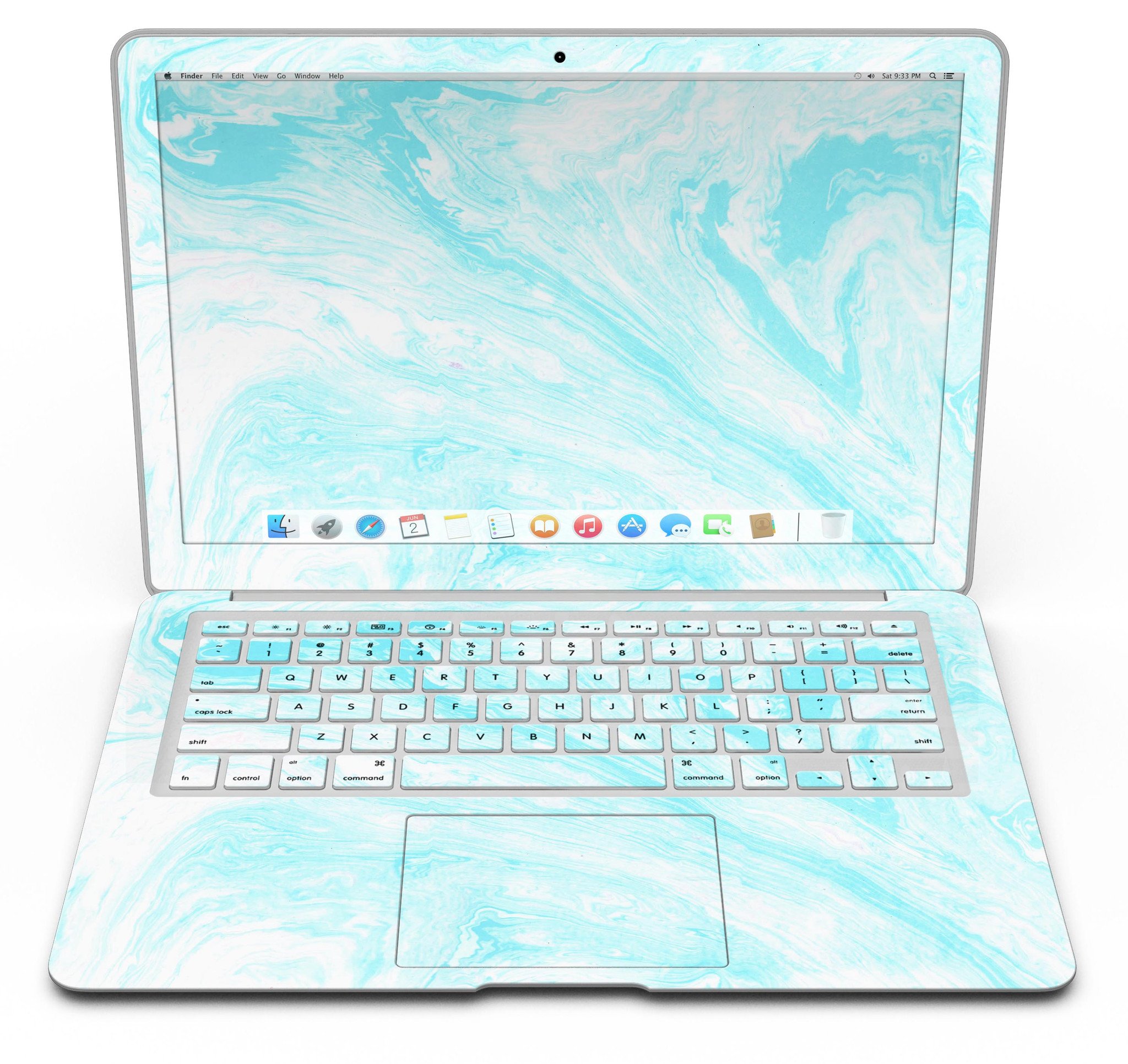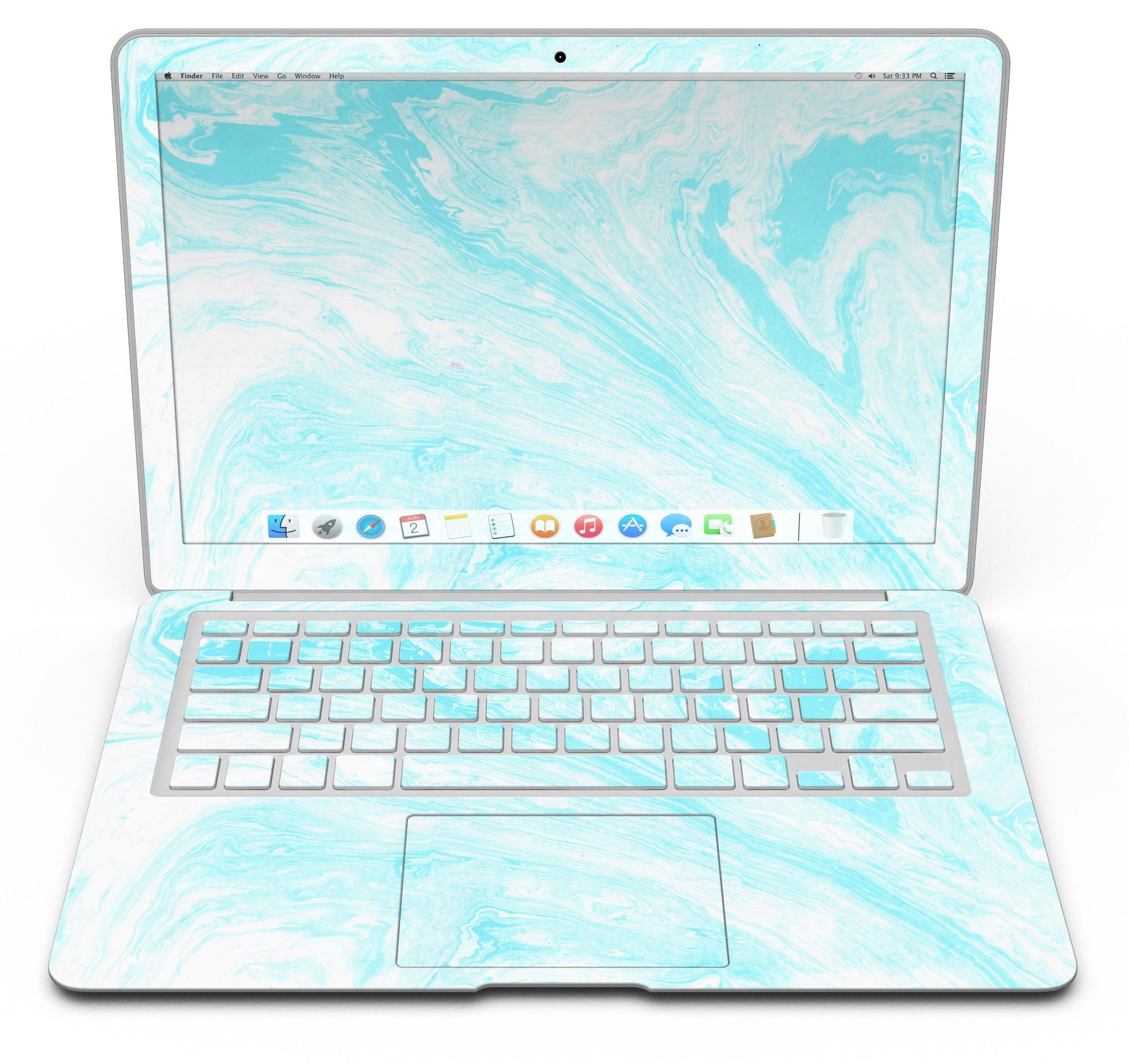 Bright Blue Textured Marble MacBook Air Skin Kit showcasing a vibrant marble design for stylish protection.