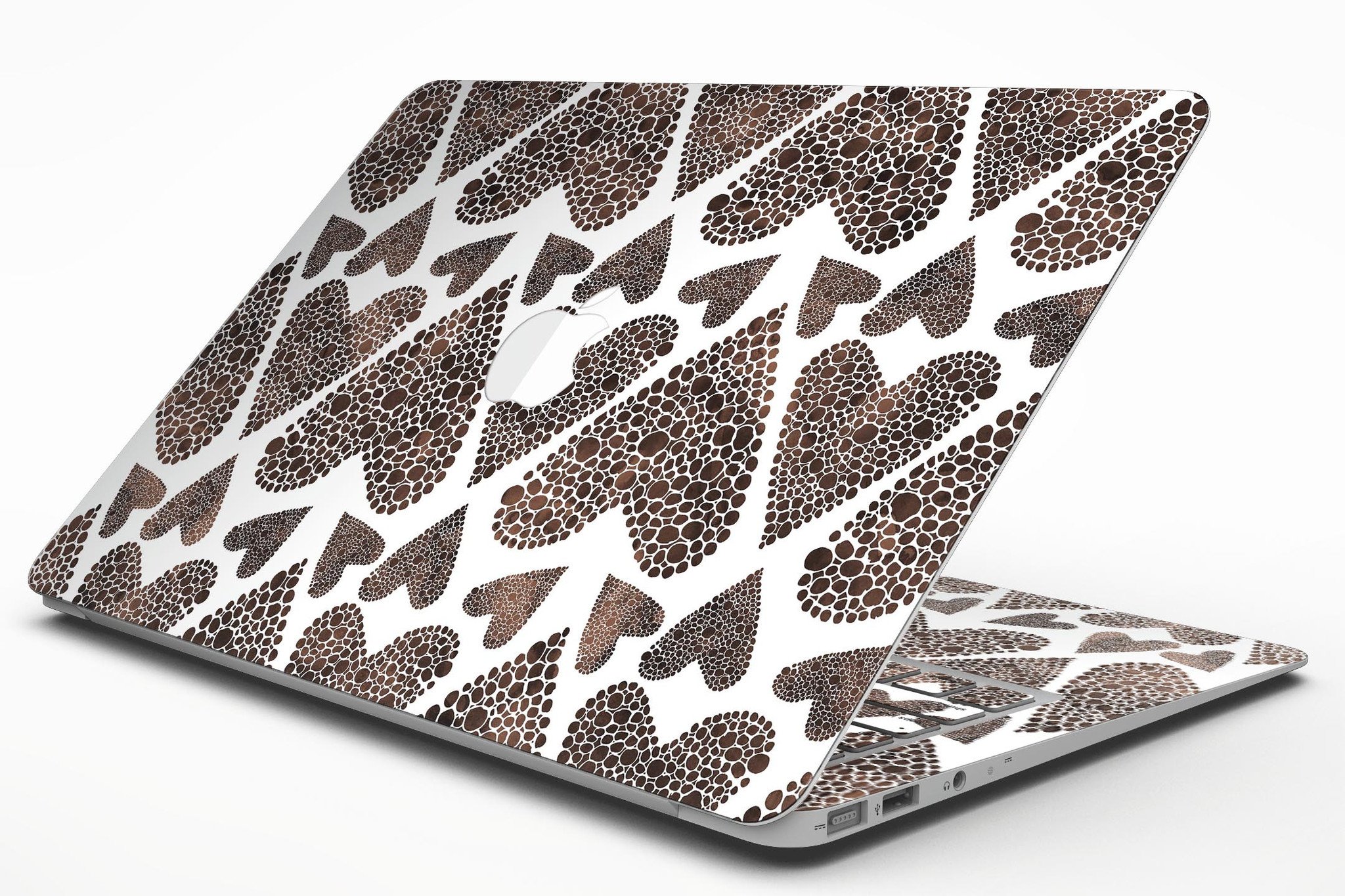 Enhance the aesthetic of your MacBook Air with our Brown Pebble Hearts Skin Kit. This innovative product allows you to personalize your device effortlessly, adding a unique touch while ensuring it remains protected from everyday wear and tear. Made from high-quality vinyl, this skin kit is designed to withstand scratches and other forms of abuse, making it a practical choice for anyone looking to maintain the pristine condition of their laptop.