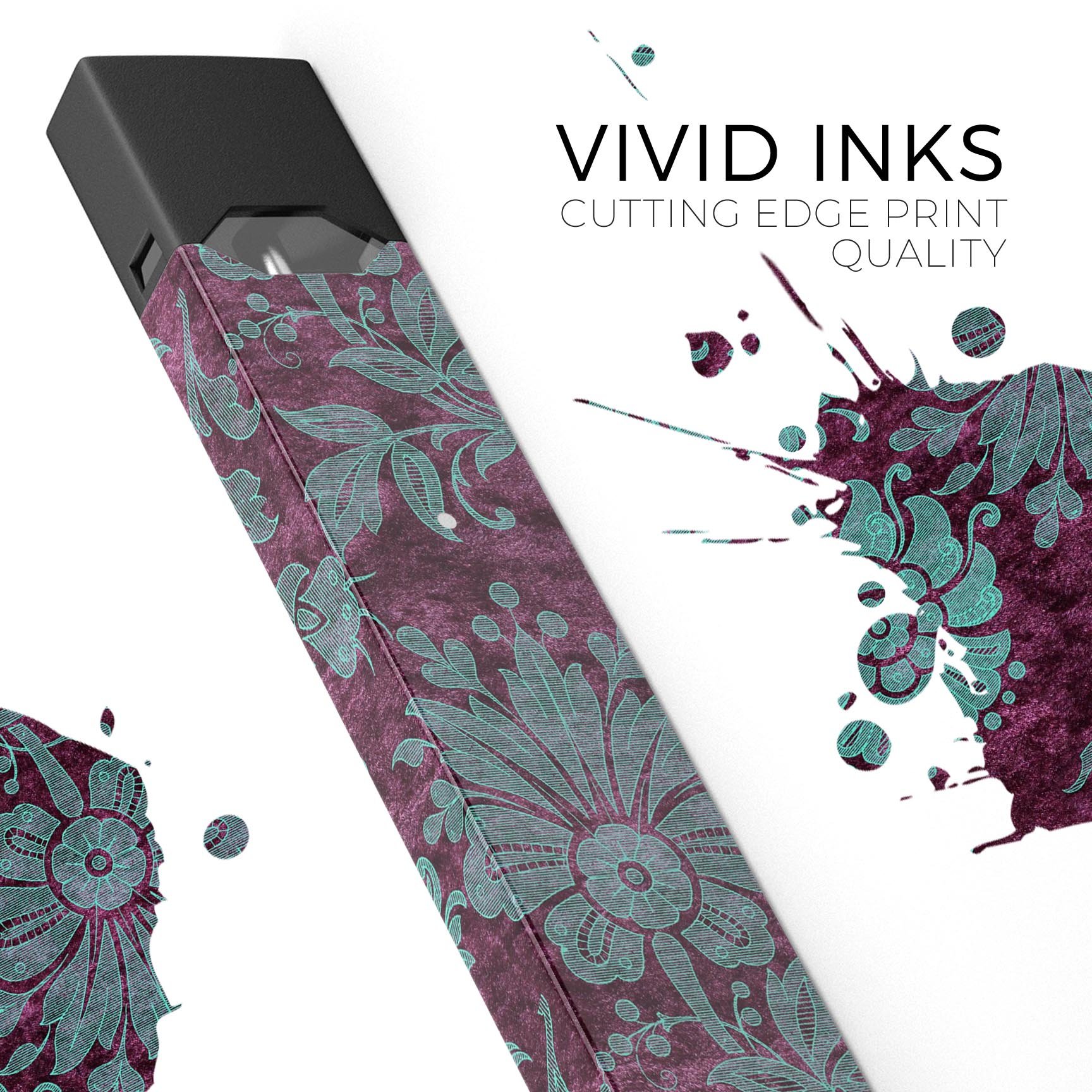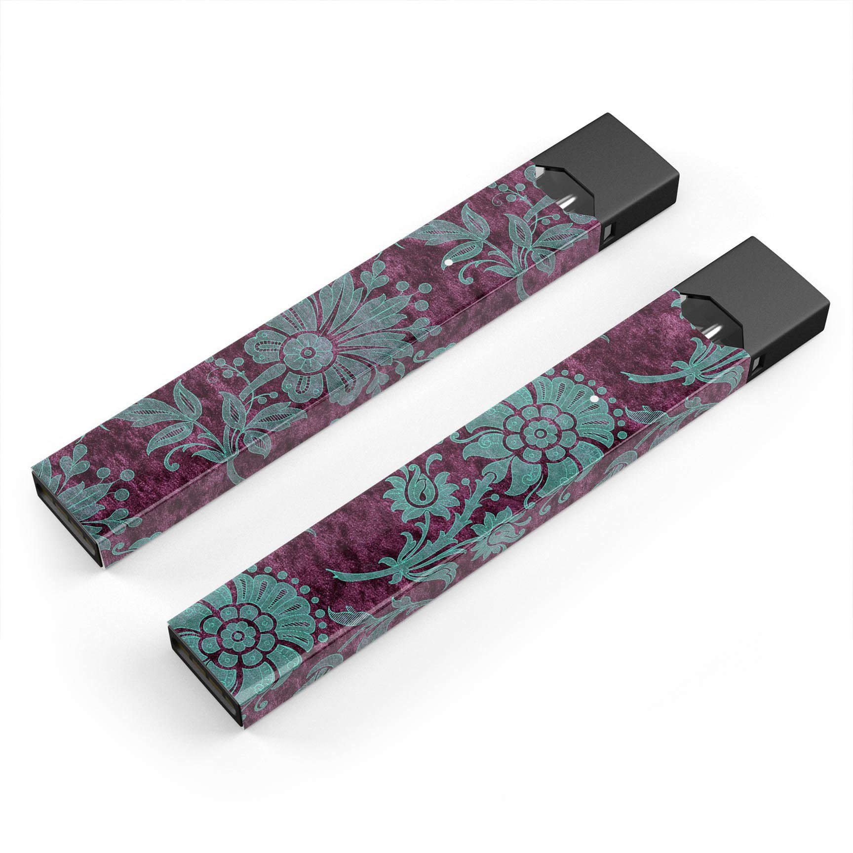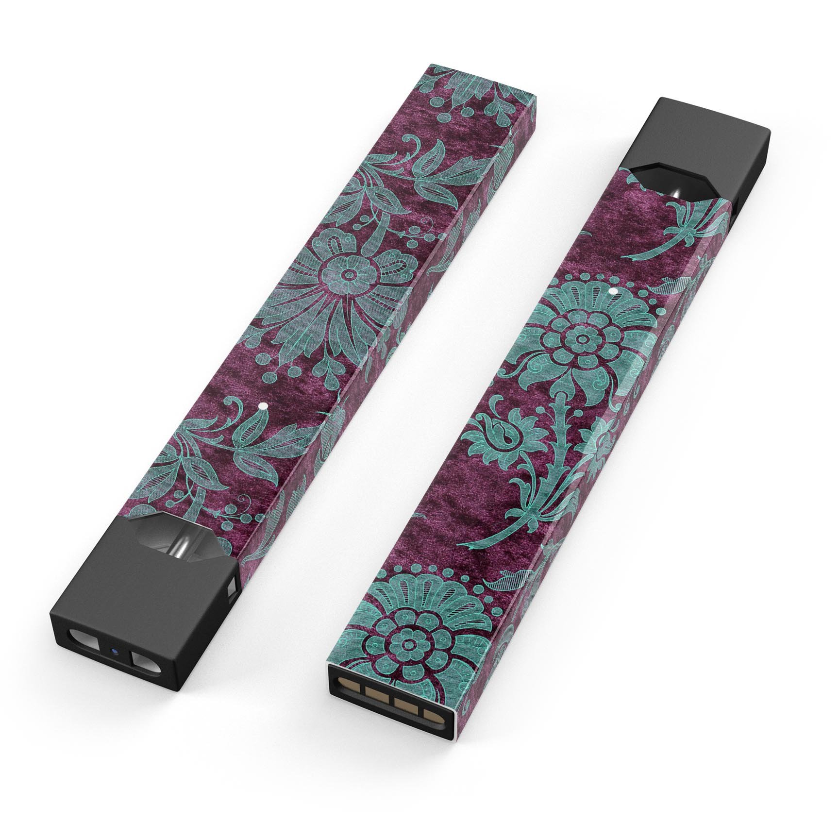 Introducing the Burgundy and Turquoise Floral Velvet v3 - Premium Decal Protective skin, the perfect way to personalize and protect your JUUL vaping device. This stylish decal not only enhances the aesthetic appeal of your device but also provides a layer of protection against scratches and daily wear. With its vibrant floral design, you can stand out from the crowd and express your unique style.