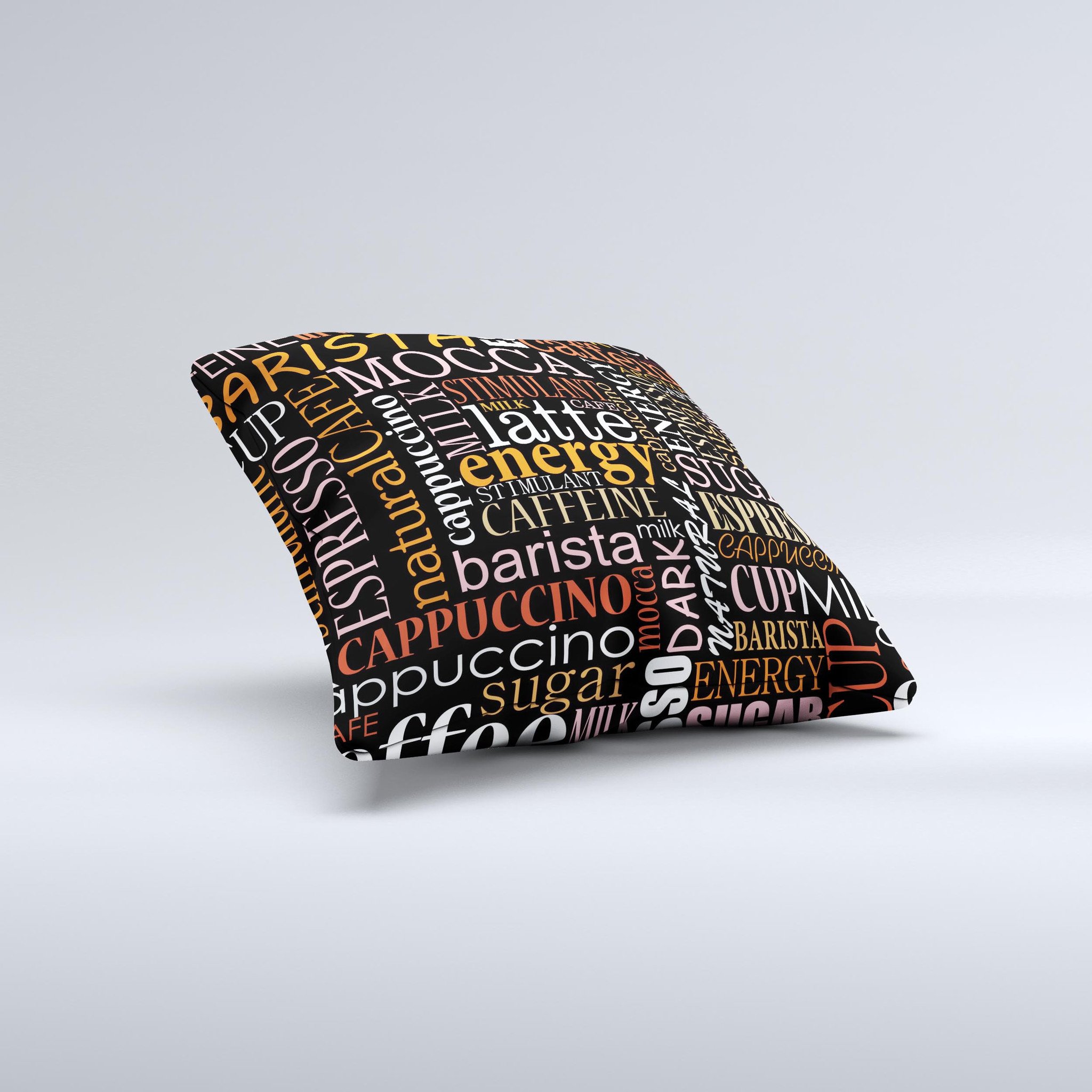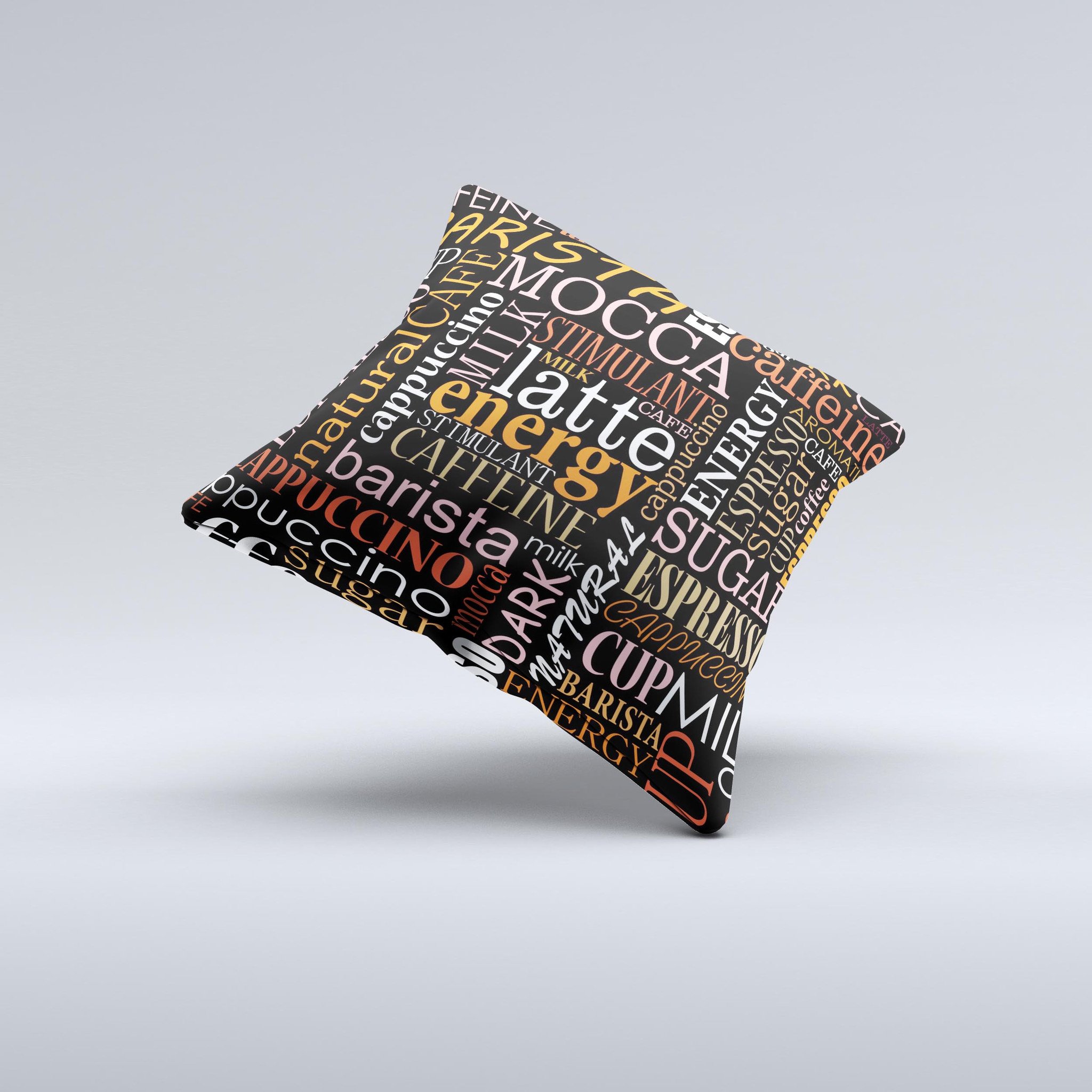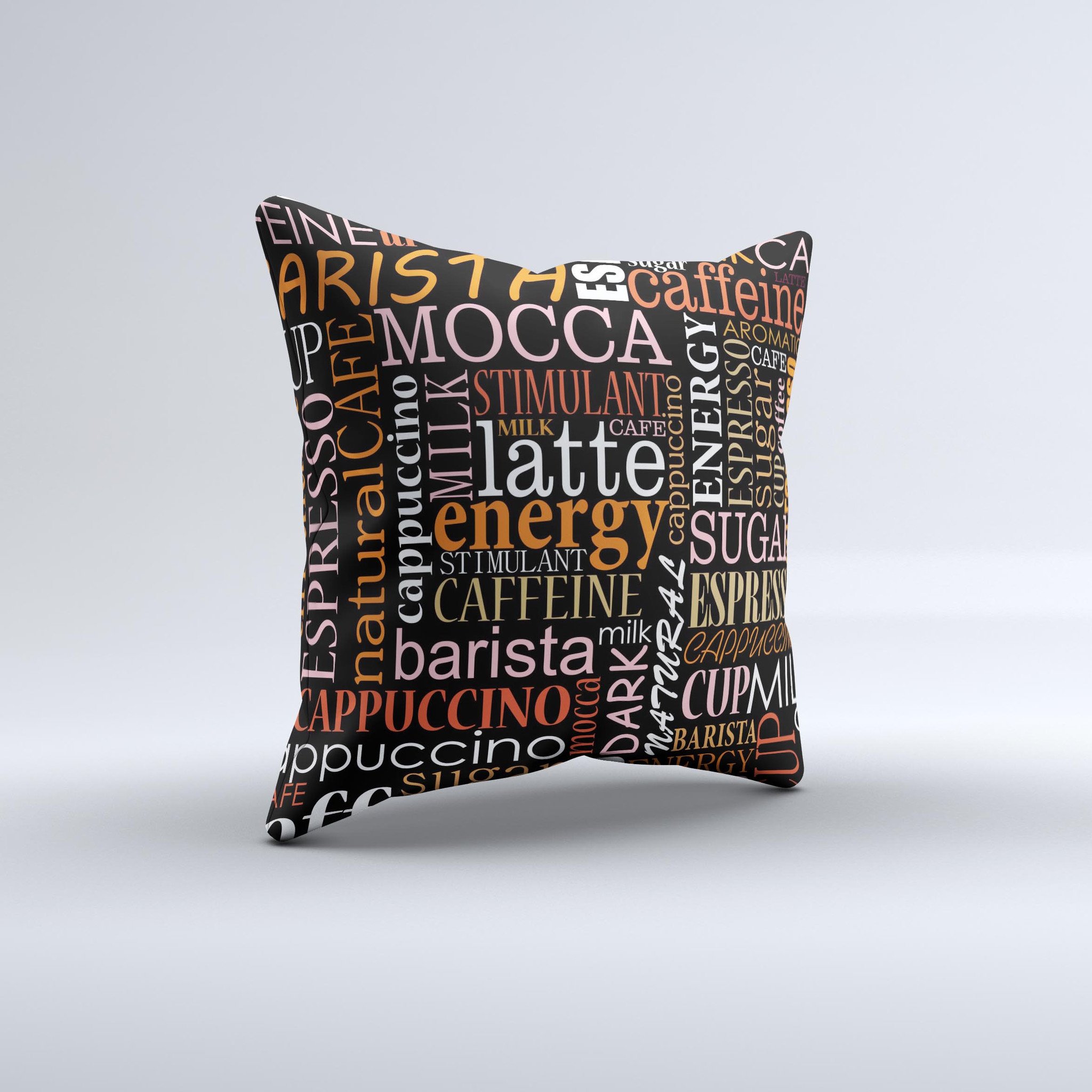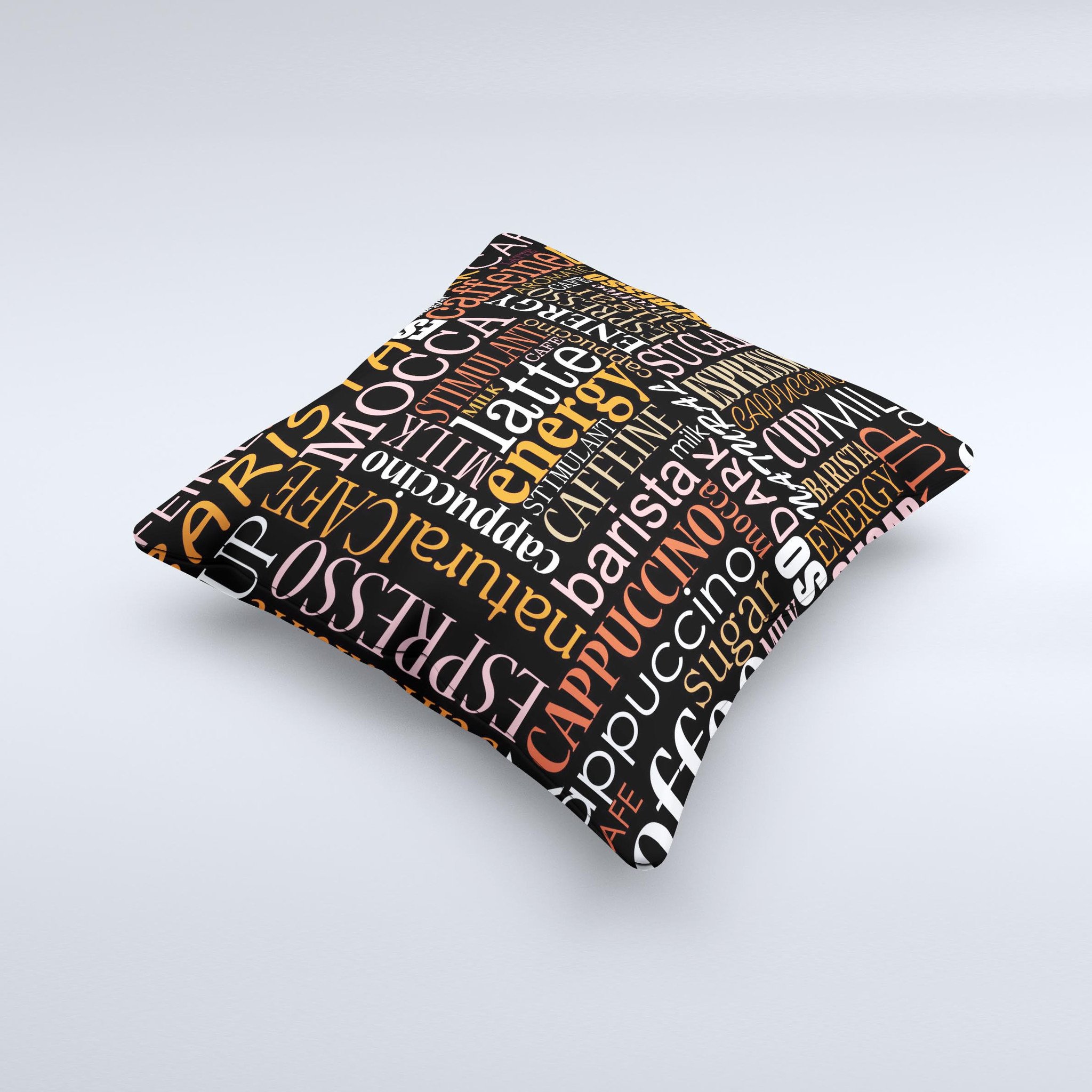 Cafe Word Cloud Ink-Fuzed Decorative Throw Pillow showcasing unique design and high-quality fabric, perfect for home decor.