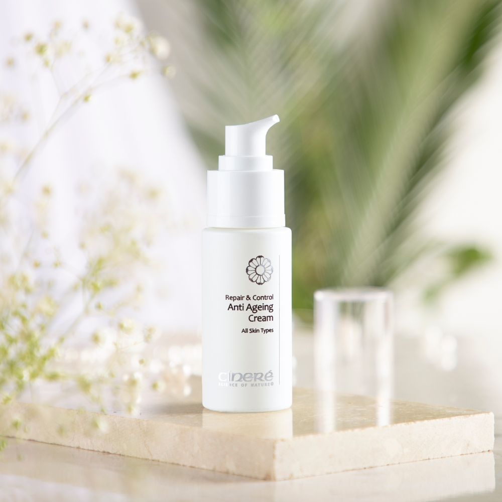 For optimal results, cleanse your face with your favorite Cinere cleanser, followed by the Cinere Herbal Energising Cleansing Toner. Apply a liberal amount of Cinere Repair & Control Anti Ageing Cream to the face and neck twice a day. Gently massage the cream into the skin using small circular motions until fully absorbed. For enhanced results, consider using the Cinéréx Advanced Regenerating Anti Wrinkle Serum in conjunction with the cream.
