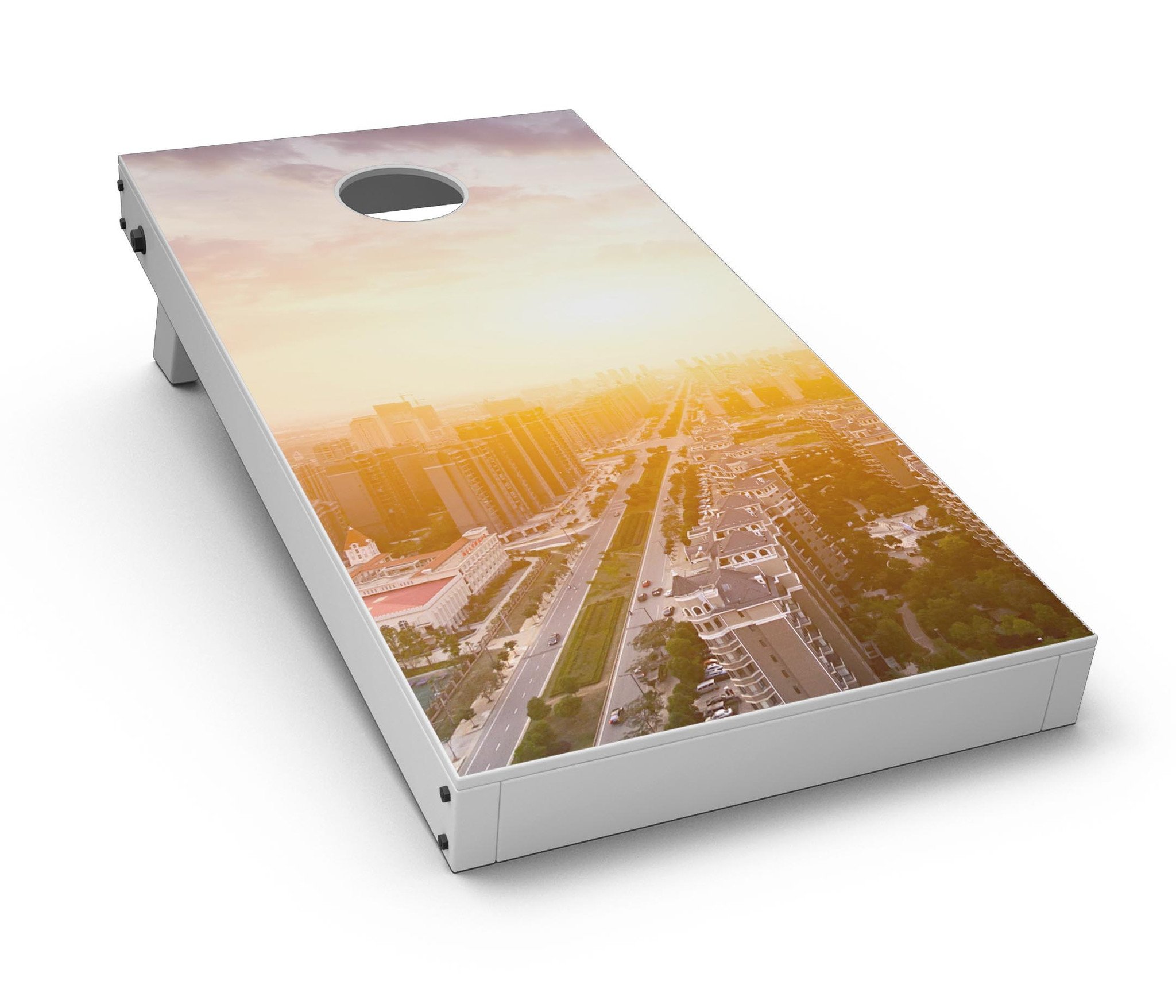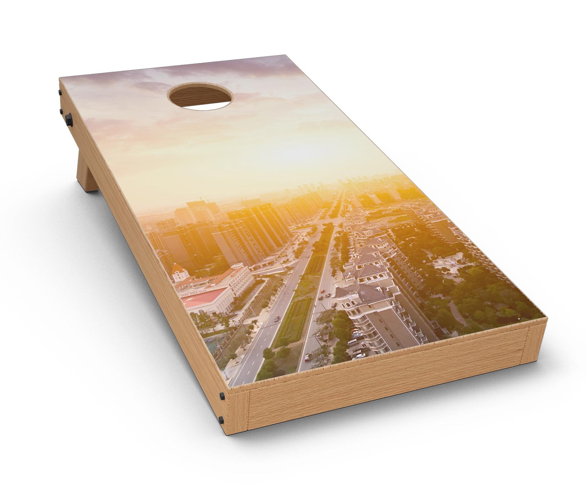 In summary, the Cityscape at Sunset CornHole Board Skin Decal Kit is the perfect solution for anyone looking to personalize their Cornhole boards. With easy application, durable materials, and a stunning design, you can transform your game into a visual masterpiece. Get ready to impress your friends and family with your stylish Cornhole setup!