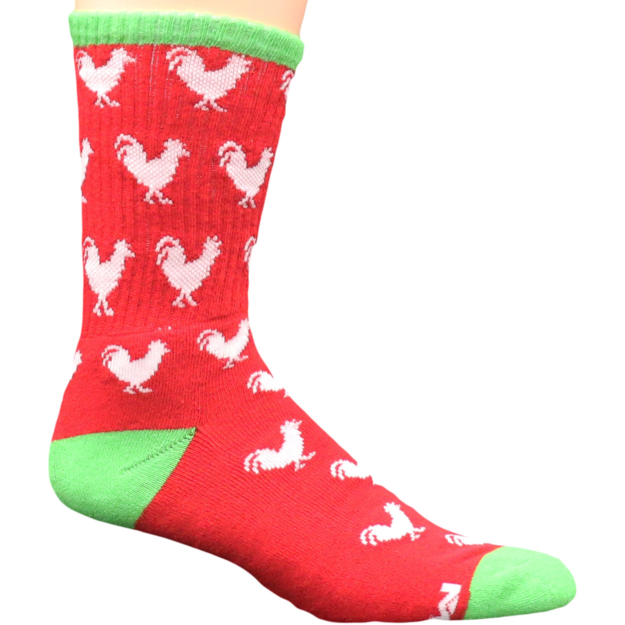 Introducing the Coo Coo Chicken Crew Socks, a delightful addition to your sock collection that brings a touch of whimsy and fun! These socks feature a playful design with a flock of chickens, making them a must-have for chicken enthusiasts and farm lovers. The vibrant red, white, and green colors not only make a bold statement but also ensure that you stand out in any crowd.