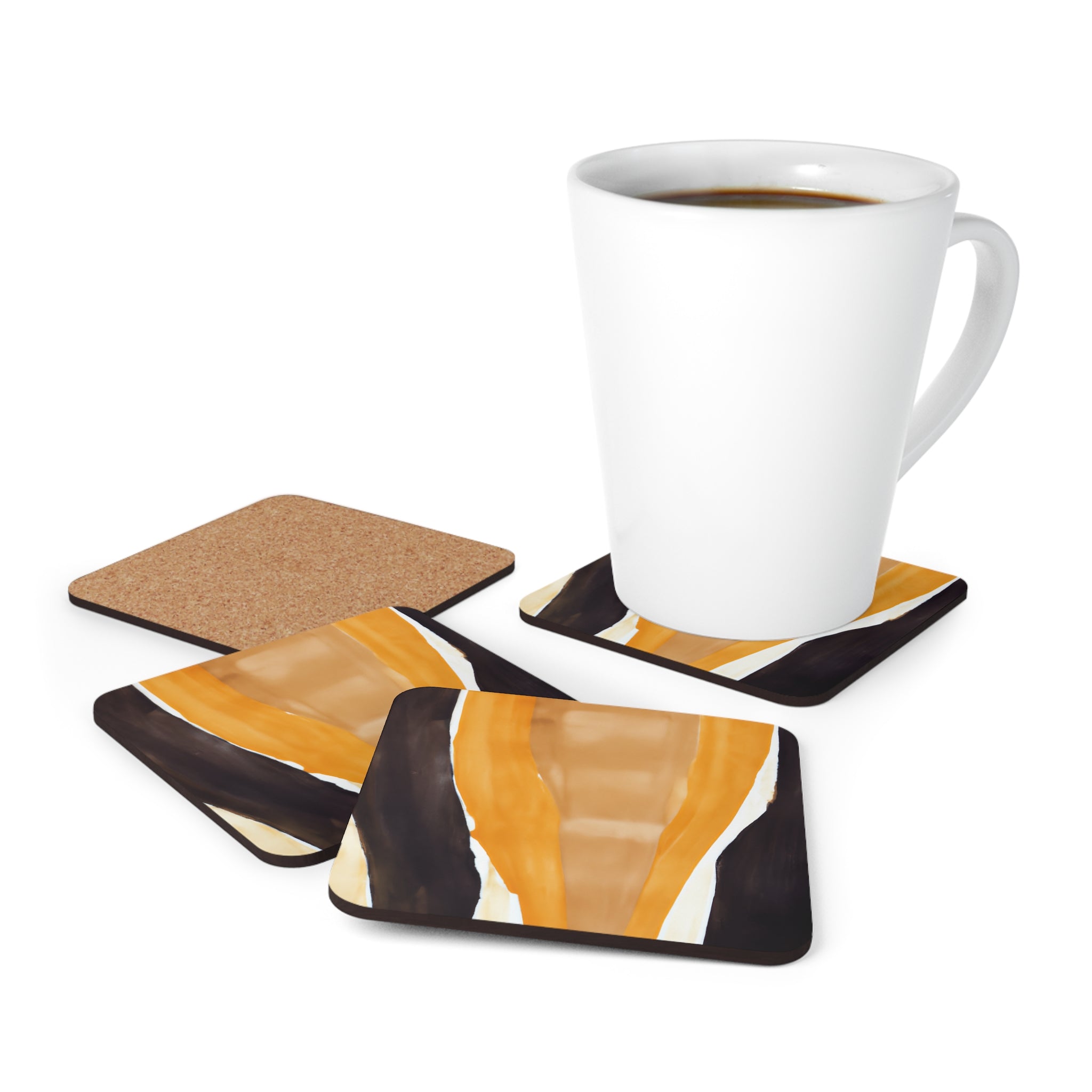 Introducing our exquisite Coaster Set of 4 for Drinks featuring a stunning Yellow Brown Abstract Pattern. This set is designed to elevate your beverage experience, whether you're enjoying a hot cup of coffee or a refreshing iced tea. Each coaster is meticulously crafted to combine functionality with aesthetic appeal, making them a perfect addition to any tabletop.
