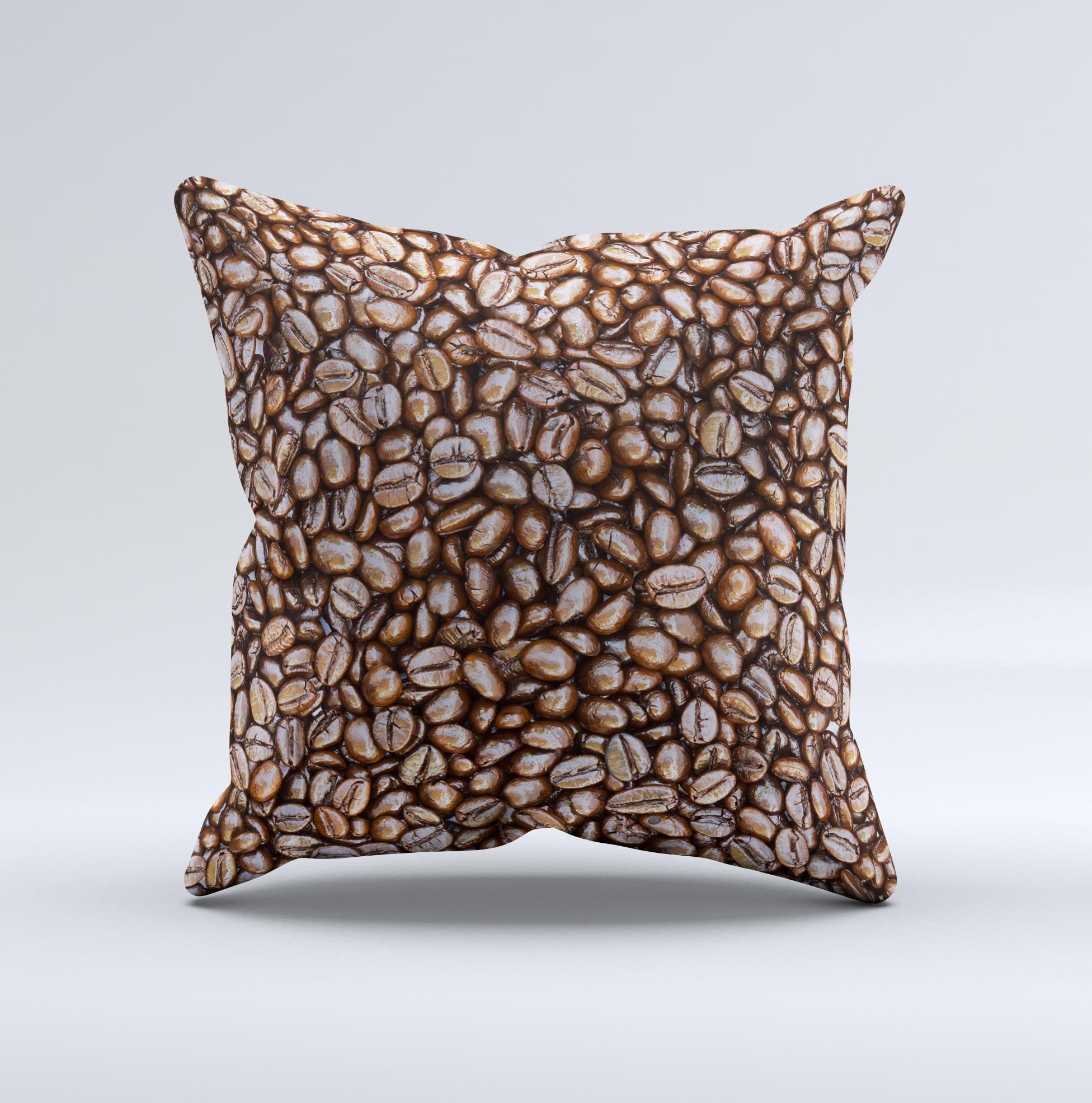 The Coffee Beans Ink-Fuzed Decorative Throw Pillow features a high thread count covering, similar to those found in high-end stores. This luxurious fabric not only enhances the aesthetic appeal of the pillow but also ensures durability and comfort. The covering is made from a blend of poly/cotton cloth, providing a soft touch while maintaining a robust structure.
