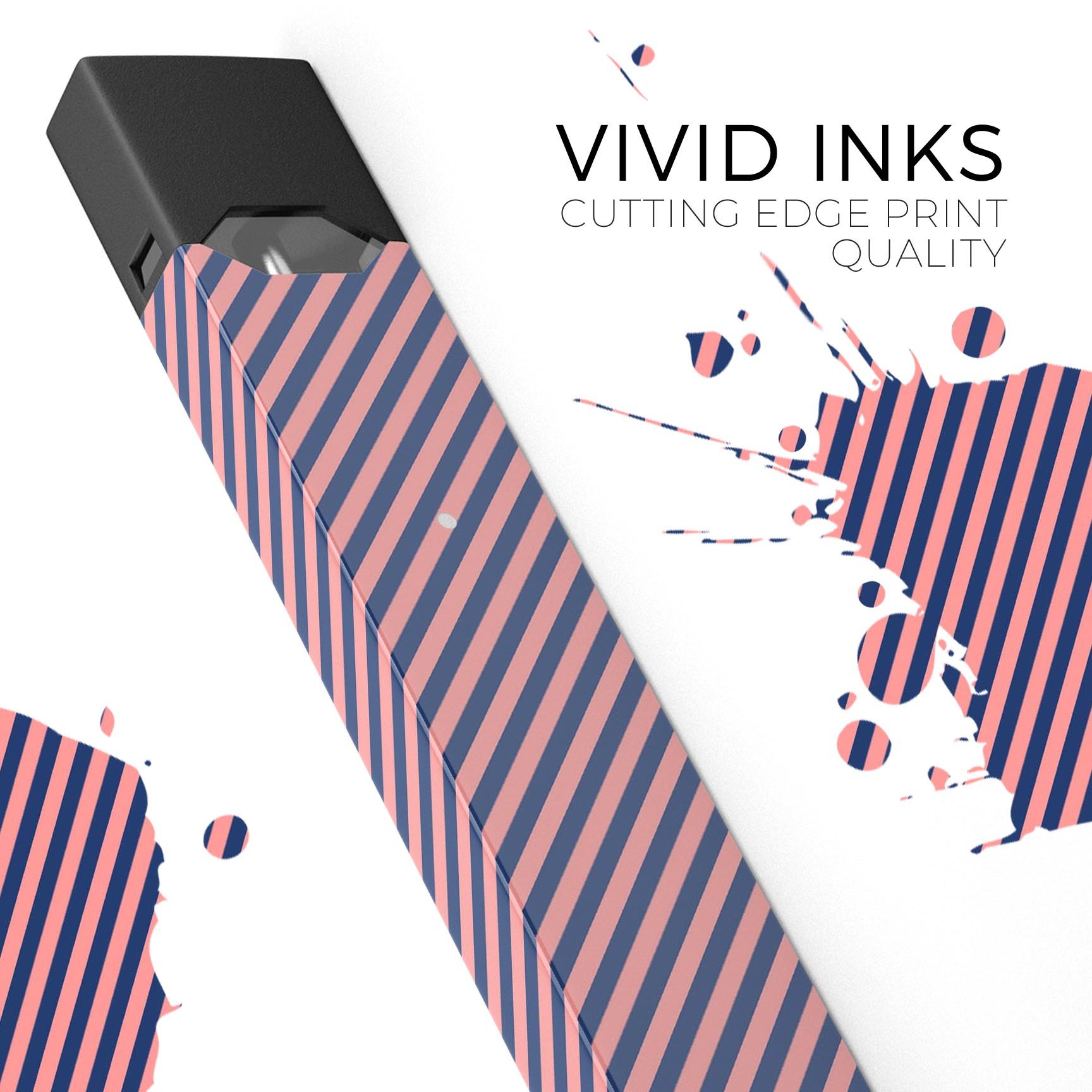 Choosing our Coral and Navy Blue Diagonal Stripes skin means opting for quality, style, and protection. The unique design not only makes your JUUL look great but also serves a practical purpose by safeguarding it from scratches and scuffs. With our easy application process and durable materials, you can enjoy a personalized vaping experience that reflects your style.