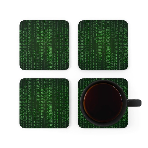 The Corkwood Coaster Set is not only functional but also versatile in its design. The digital code style adds a contemporary touch that can complement various interior design themes, from modern to eclectic. Use them in your living room, dining room, or even in your home office. They make a great addition to any space and can also serve as a thoughtful gift for housewarmings, weddings, or any special occasion.