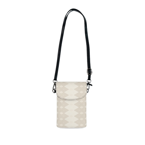 Introducing our Crossbody Bag, Small Cell Phone Purse in a stunning Beige and White Tribal design. This stylish accessory is perfect for those who want to keep their essentials close while making a fashion statement. With its compact size of 7.5" x 4.9", this purse is designed to hold your phone and cards securely, making it an ideal choice for outings, travel, or everyday use.