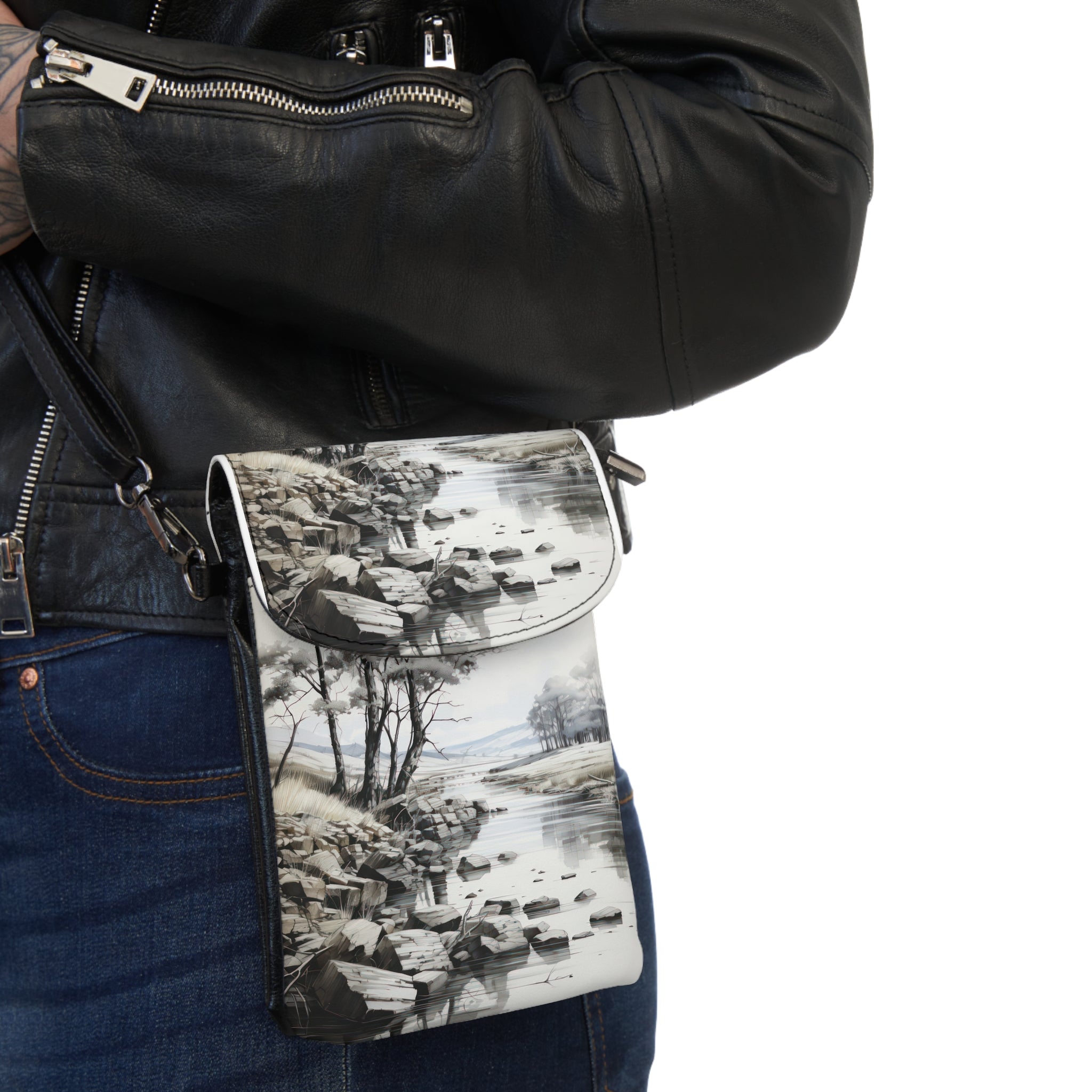 The Still Waters Watercolor Crossbody Bag is the perfect blend of style and functionality. Designed for those who appreciate both aesthetics and practicality, this small cell phone purse is ideal for everyday use or special occasions. With its beautiful watercolor print depicting a peaceful lake, this bag not only serves as a functional accessory but also as a statement piece that complements any outfit.