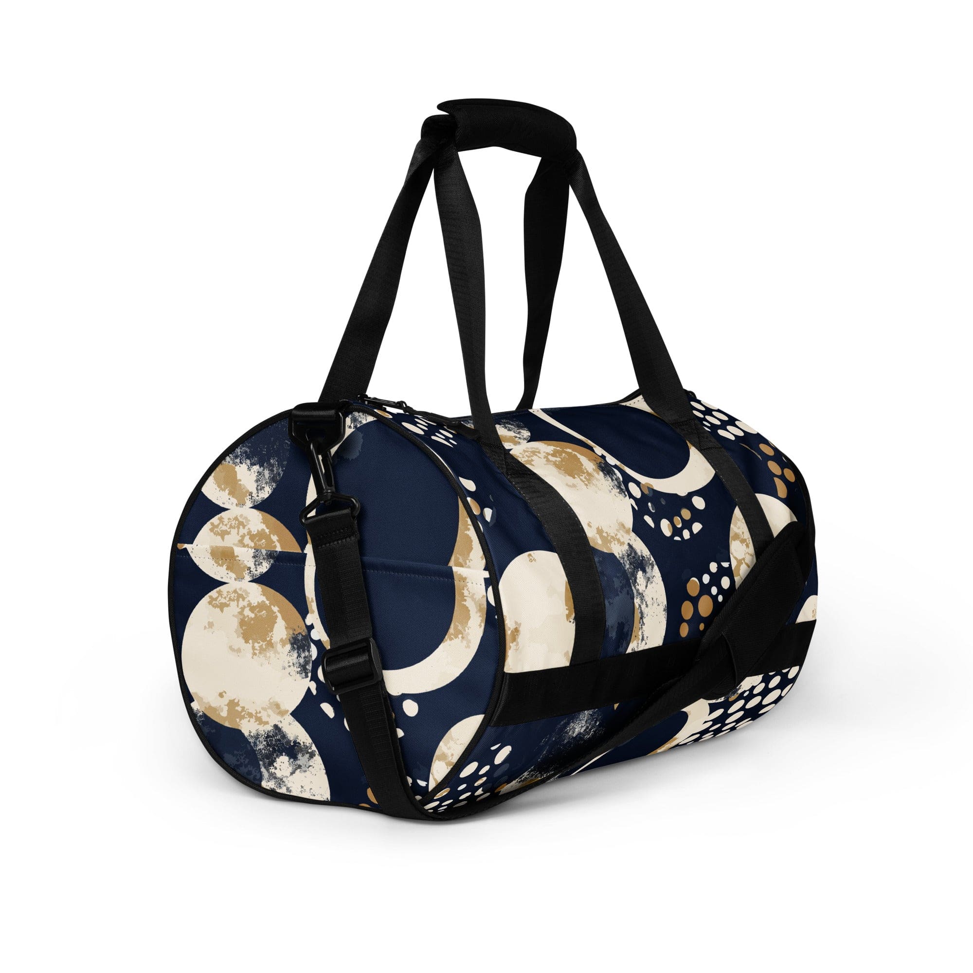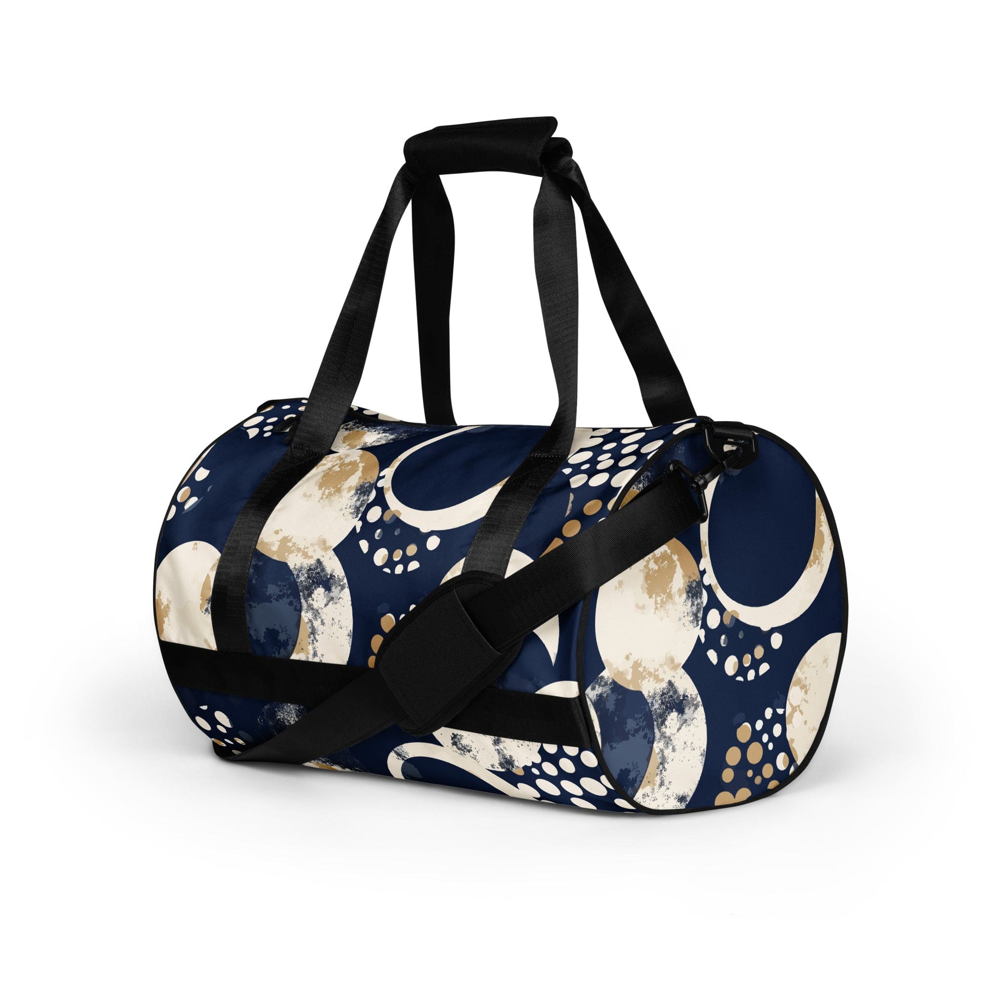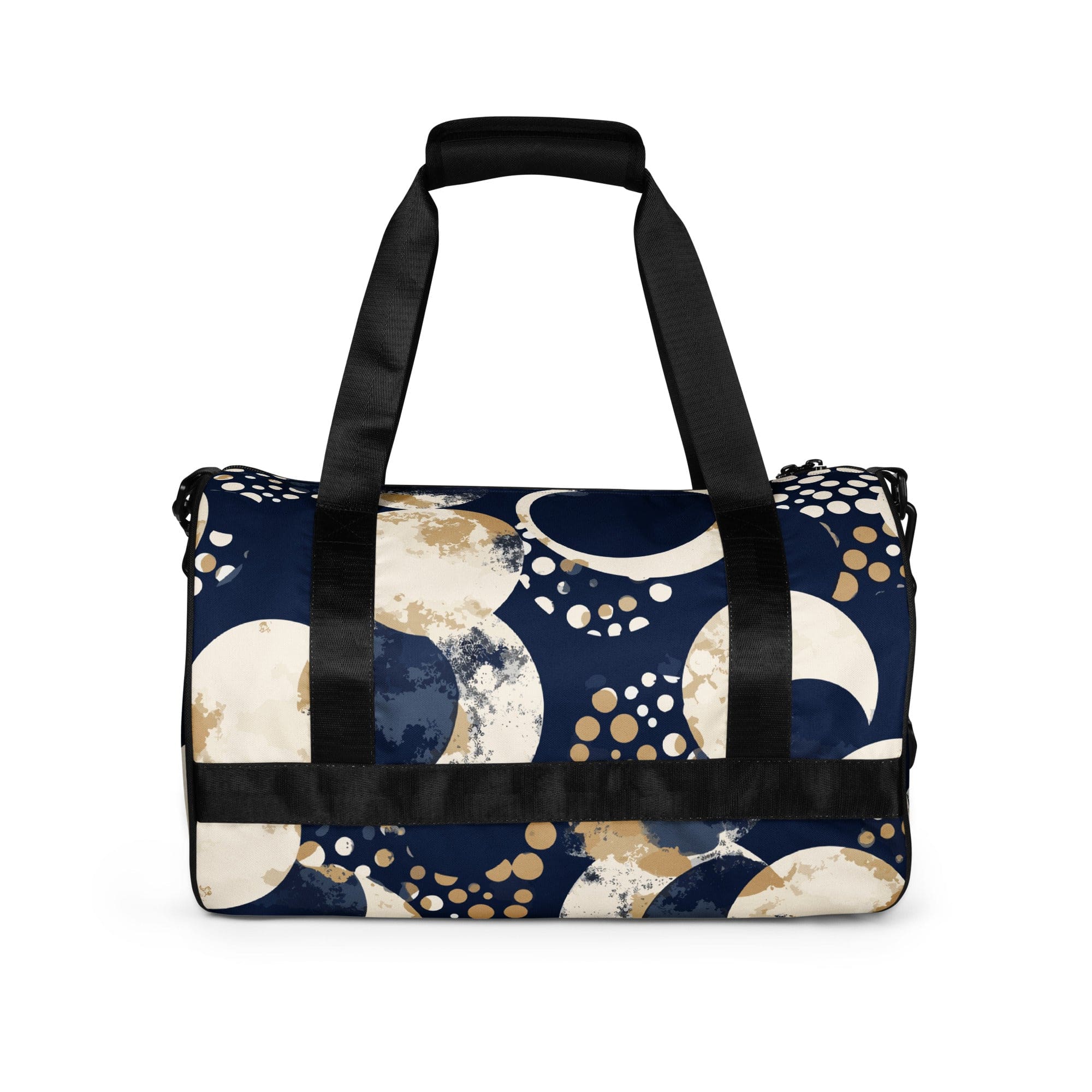 In summary, the Crossbody Water-resistant Travel Bag in Blue Beige Spotted Print is a must-have for anyone looking for a blend of style and functionality. With its durable materials, thoughtful design, and handcrafted quality, this bag is sure to become your go-to accessory for all your travel and fitness needs.
