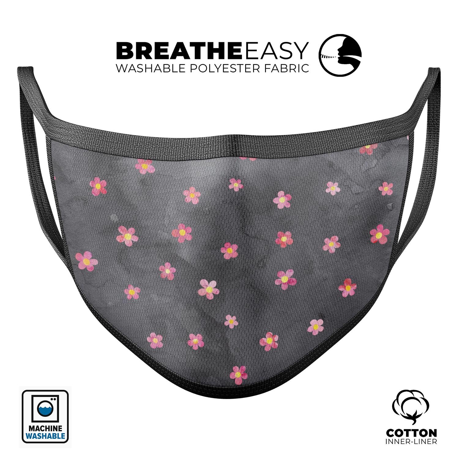 Dropship Cute Watercolor Flowers over Black - Made in USA Mouth Cover Unisex