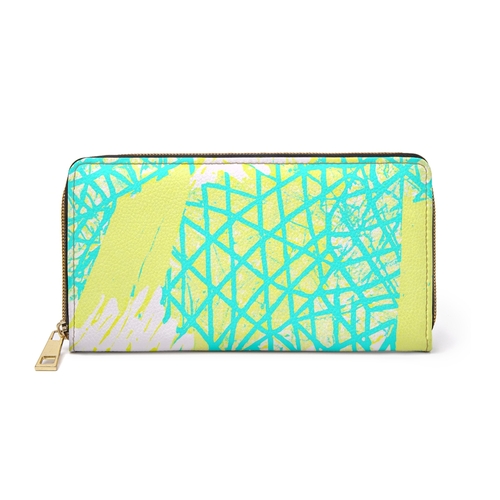 Introducing the Cyan Blue Lime Green and White Pattern Women's Zipper Wallet Clutch, a perfect blend of style and functionality. This wallet is designed to keep your essentials organized while making a bold fashion statement. The vibrant colors and unique pattern make it an eye-catching accessory that complements any outfit.