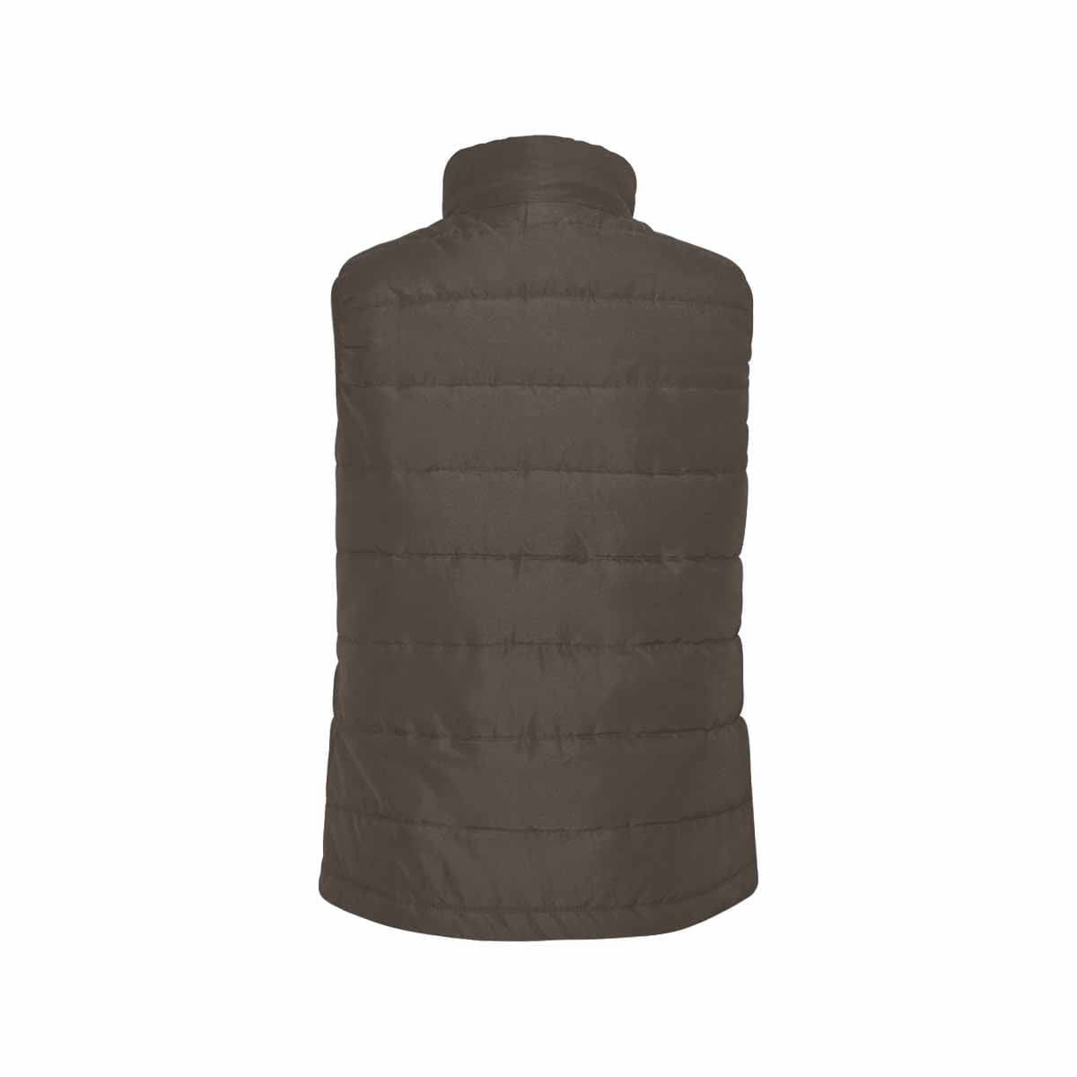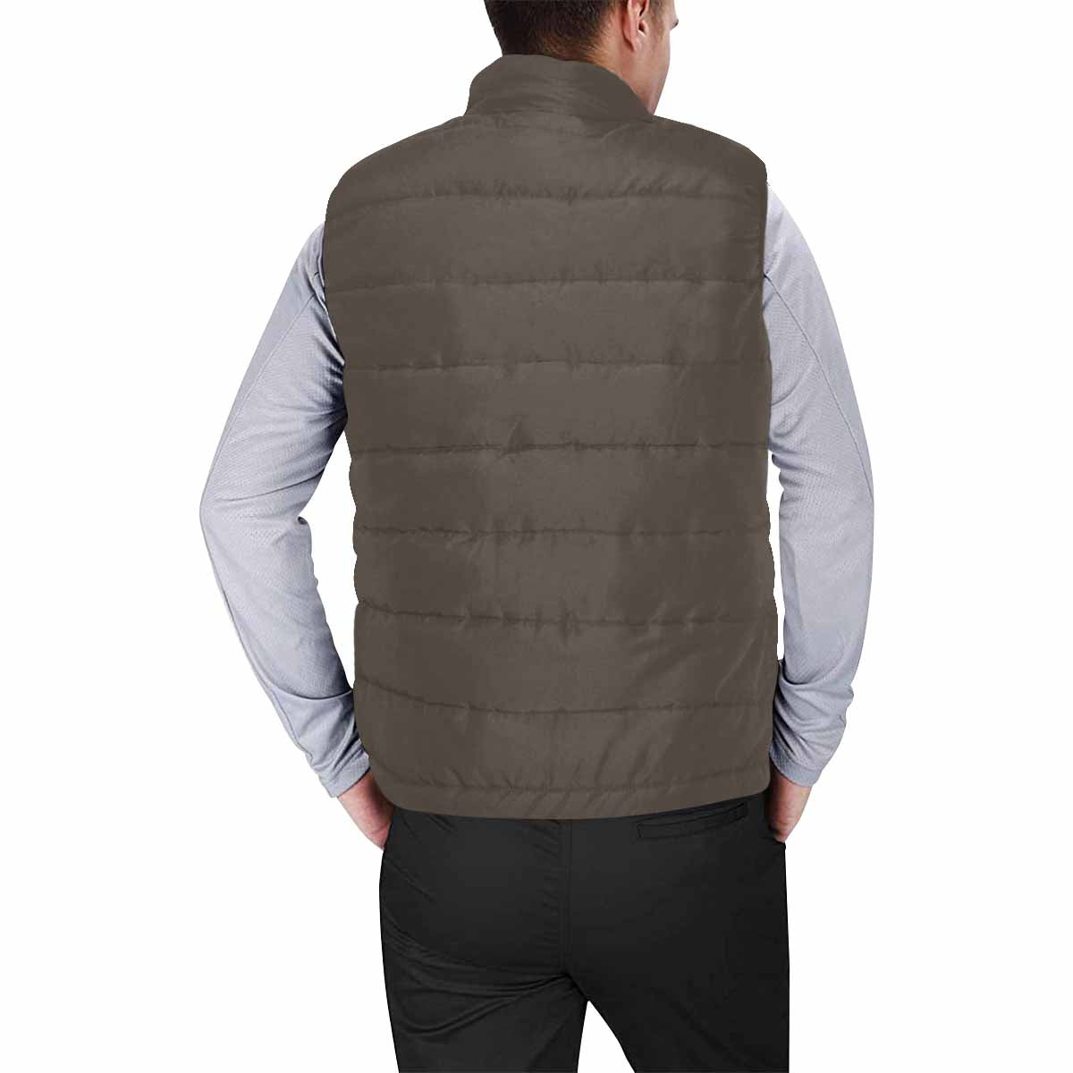 Dark taupe brown men's padded vest featuring a quilted design and zipper closure, perfect for layering in cool weather.