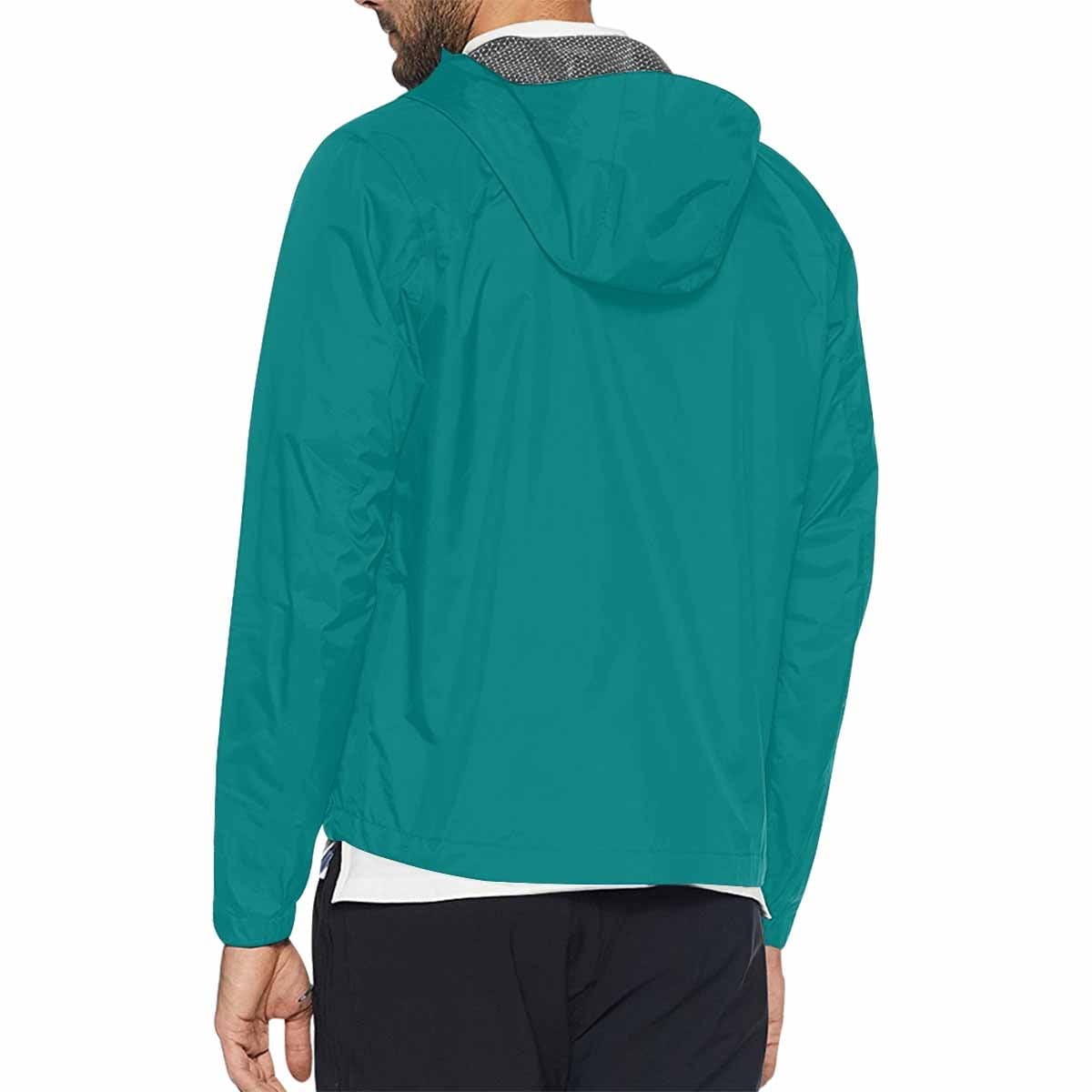 Introducing the Dark Teal Green Hooded Windbreaker Jacket, a versatile and stylish addition to your wardrobe. This jacket is designed for both men and women, making it a perfect unisex option for anyone looking to enhance their outerwear collection. Crafted from 100% polyester, this windbreaker is not only fashionable but also wind resistant, ensuring you stay comfortable in various weather conditions.