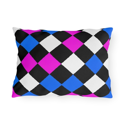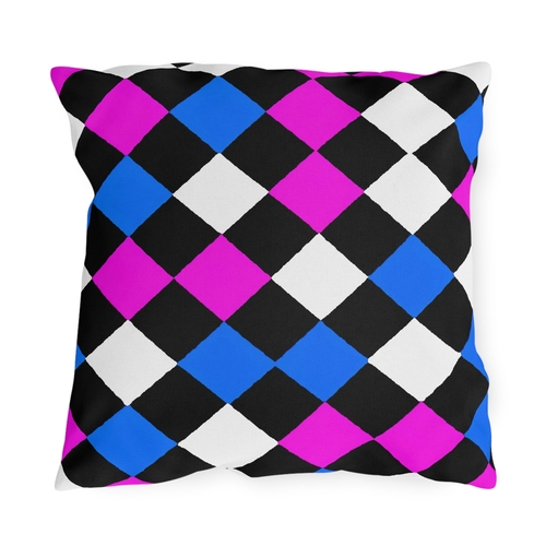 Transform your outdoor living area with our Decorative Indoor/Outdoor Pillow featuring a striking Black Pink Blue Checkered Pattern. This pillow is not just a decorative piece; it is a statement of style and creativity that enhances any space. Crafted with care, it is designed for those who appreciate unique aesthetics and want to express their individuality through their decor choices.