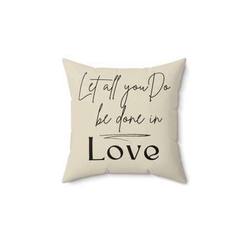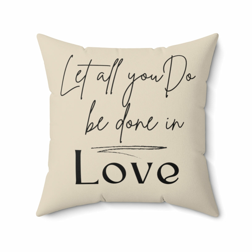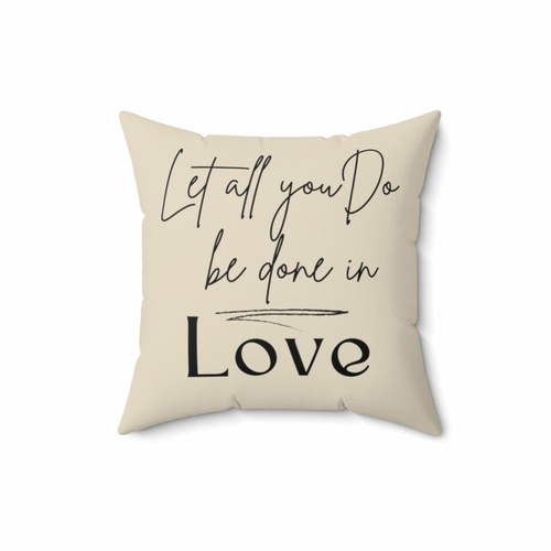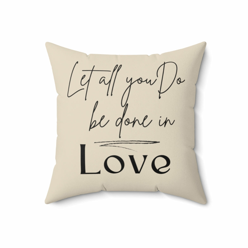 Transform your living space with our Decorative Throw Pillow Cover, featuring the uplifting phrase, 'Let All You Do Be Done in Love.' This beautifully crafted pillow cover is not just a decorative piece; it is a statement of positivity and warmth that can enhance the ambiance of any room. Whether you place it on your living room sofa, office couch, or bedroom bedding, this throw pillow cover is designed to bring comfort and style to your home.