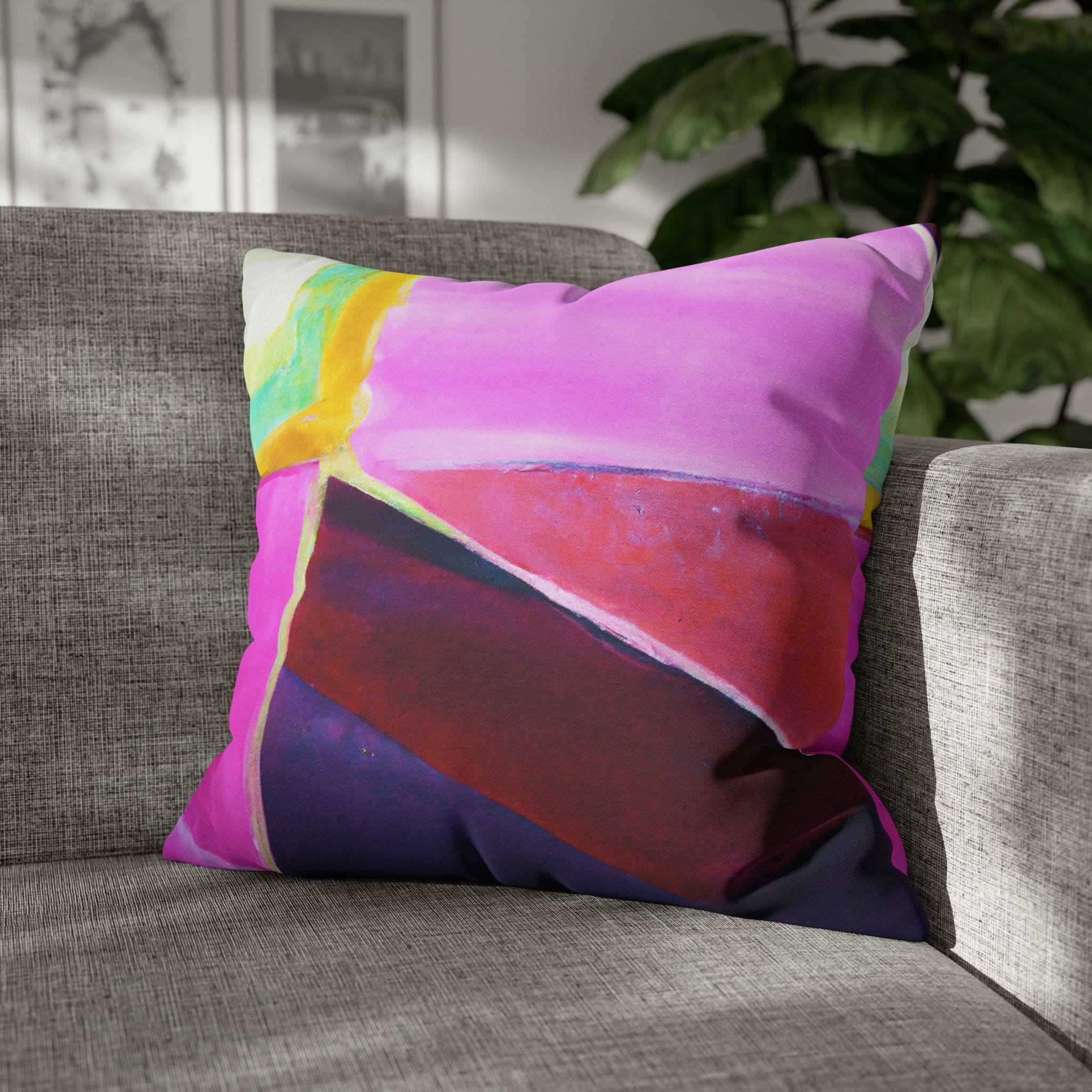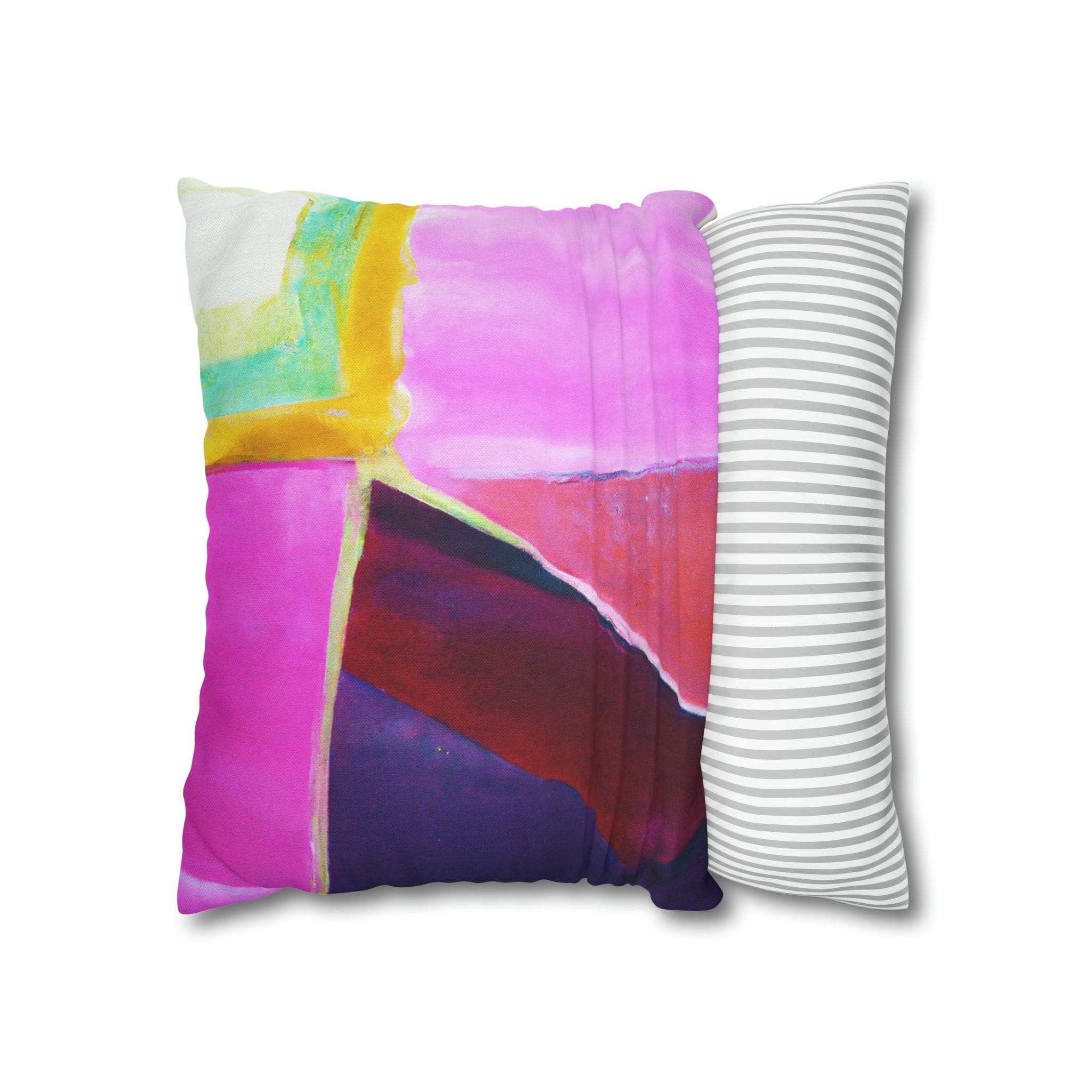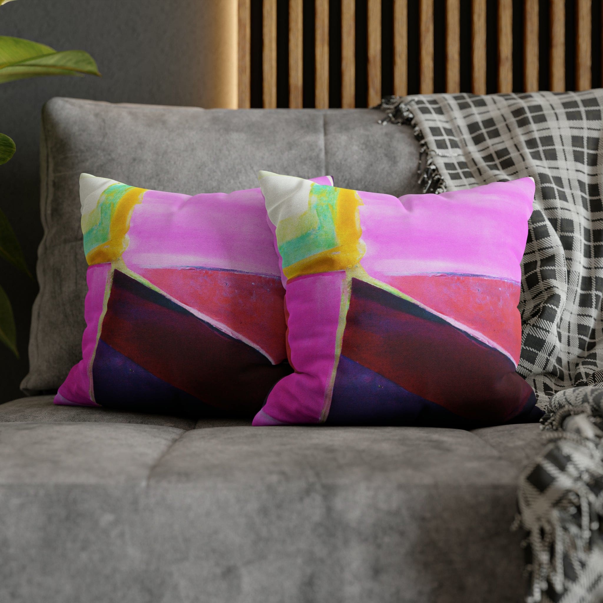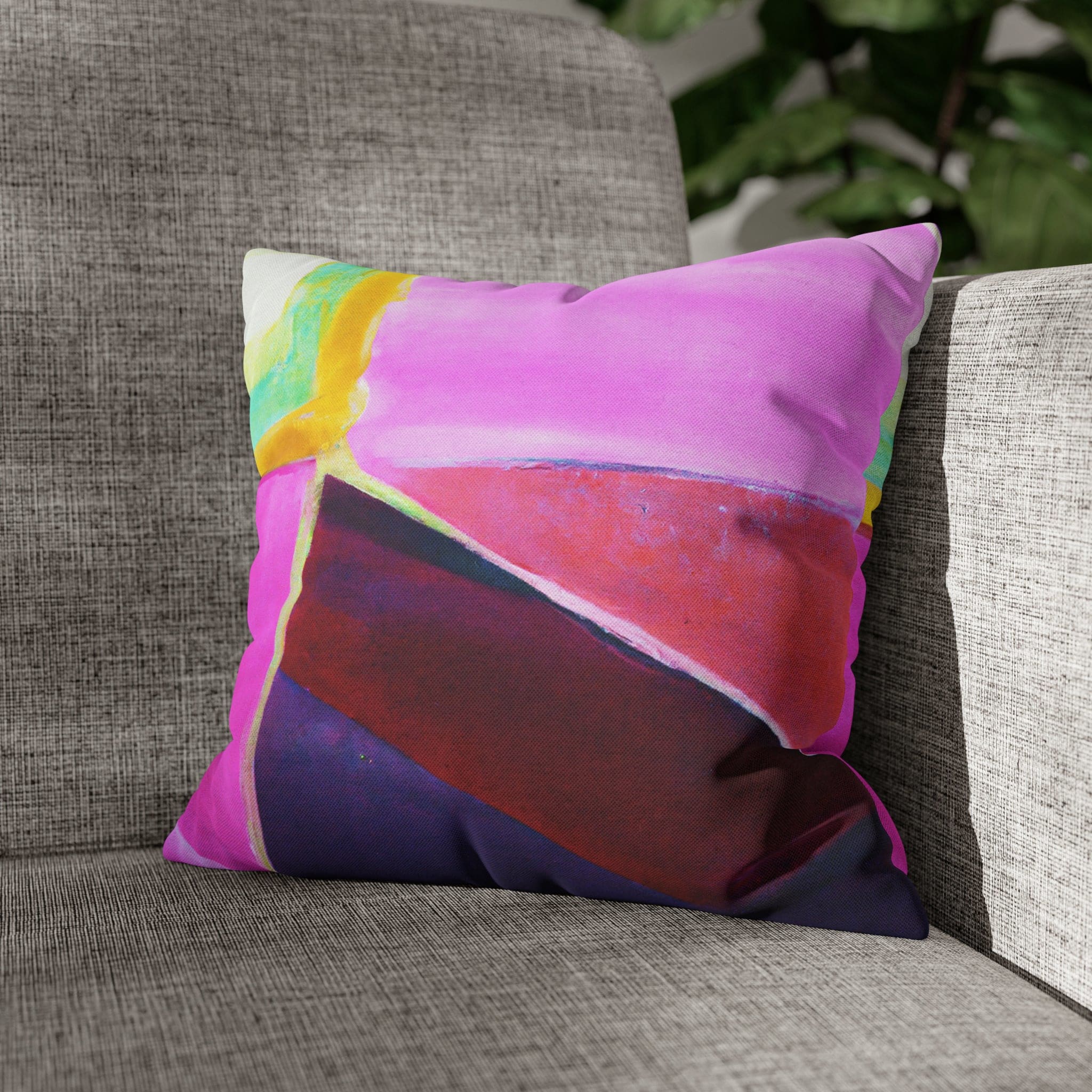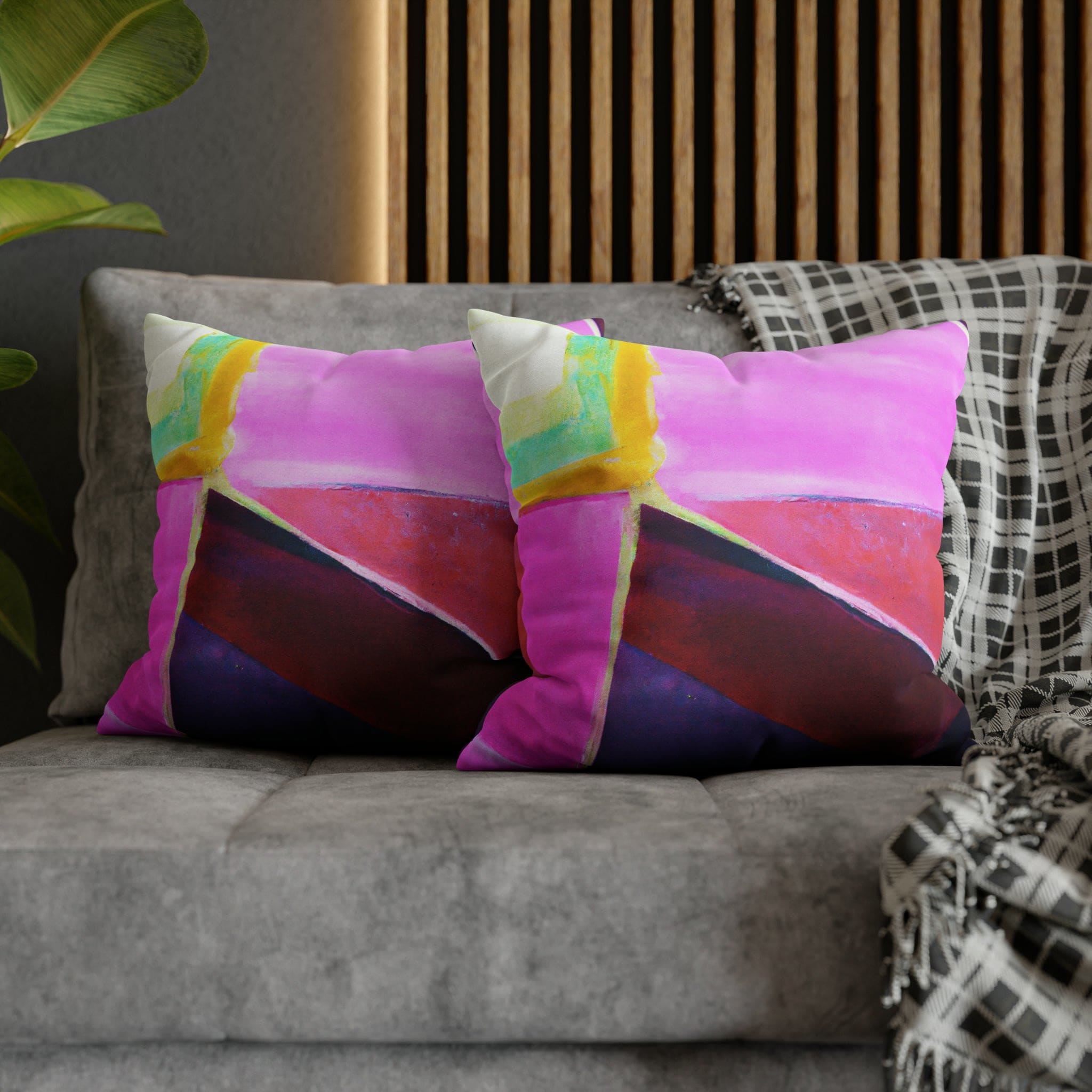 Transform your living space with our Decorative Throw Pillow Cover featuring a stunning pink, purple, and red geometric pattern. This eye-catching design is perfect for adding a pop of color and style to your sofa, office couch, or bedroom bedding. Crafted with meticulous attention to detail, this throw pillow cover not only enhances your decor but also provides a luxurious feel that complements any interior design.
