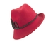 Fashionable red felt fedora hat. We designed special trim that is hand made to perfection, This hat features classic, yet absolutely unusual design and will be a perfect complement to your autumn and winter outfit.