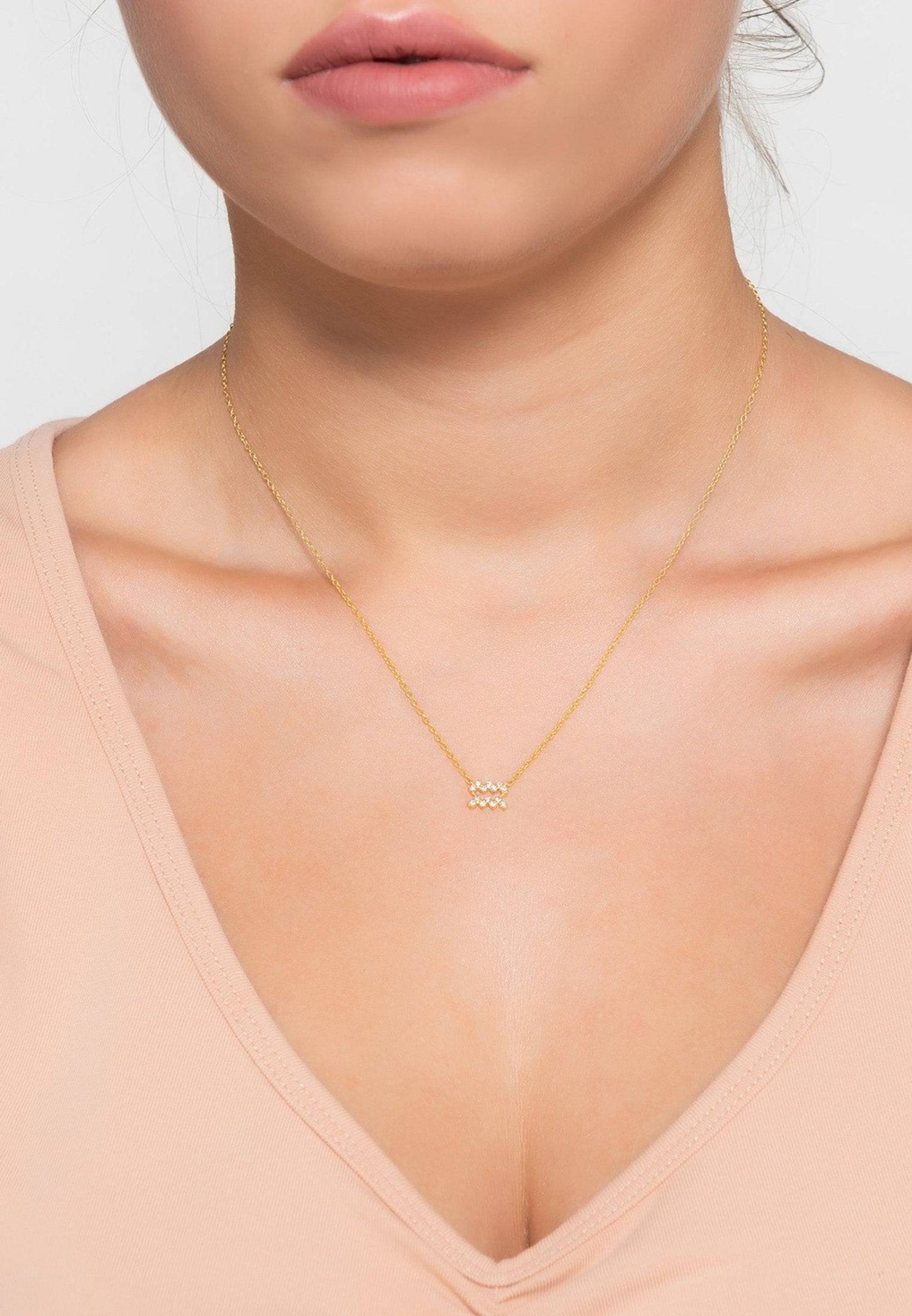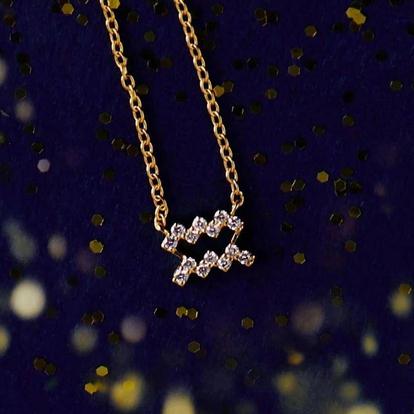 Pair the Diamond Zodiac Necklace Gold Aquarius with a simple blouse or dress to let it shine as the focal point of your outfit. It can also be layered with other necklaces for a trendy, stacked look. Whether you’re dressing up for a special occasion or adding a touch of elegance to your everyday attire, this necklace is versatile enough to complement any style.