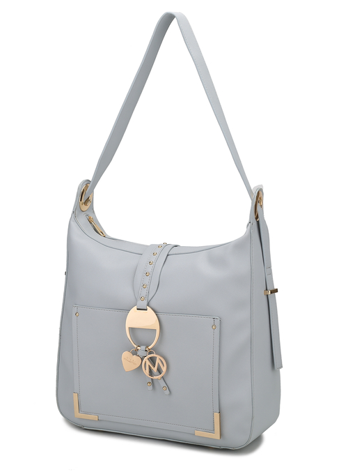 • FEATURE: Design with Luxurious gold-tone embellishments. The Elianna Hobo is everyone's favorite everyday bag with, Top zipper, and a top handle with gold grommets for decoration, our handbag is spacious and is a one-compartment bag. The Elianna Hobo comes with our signature charms on the flap, has a front pocket with hand-pressed studs, and has hand-painted edges.