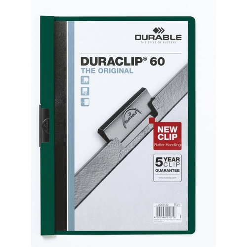 Return to the office without forgetting a single thing! Buy Document Folder Durable Duraclip 60 Transparent A4 25 Pieces Dark green and be the envy of your colleagues!