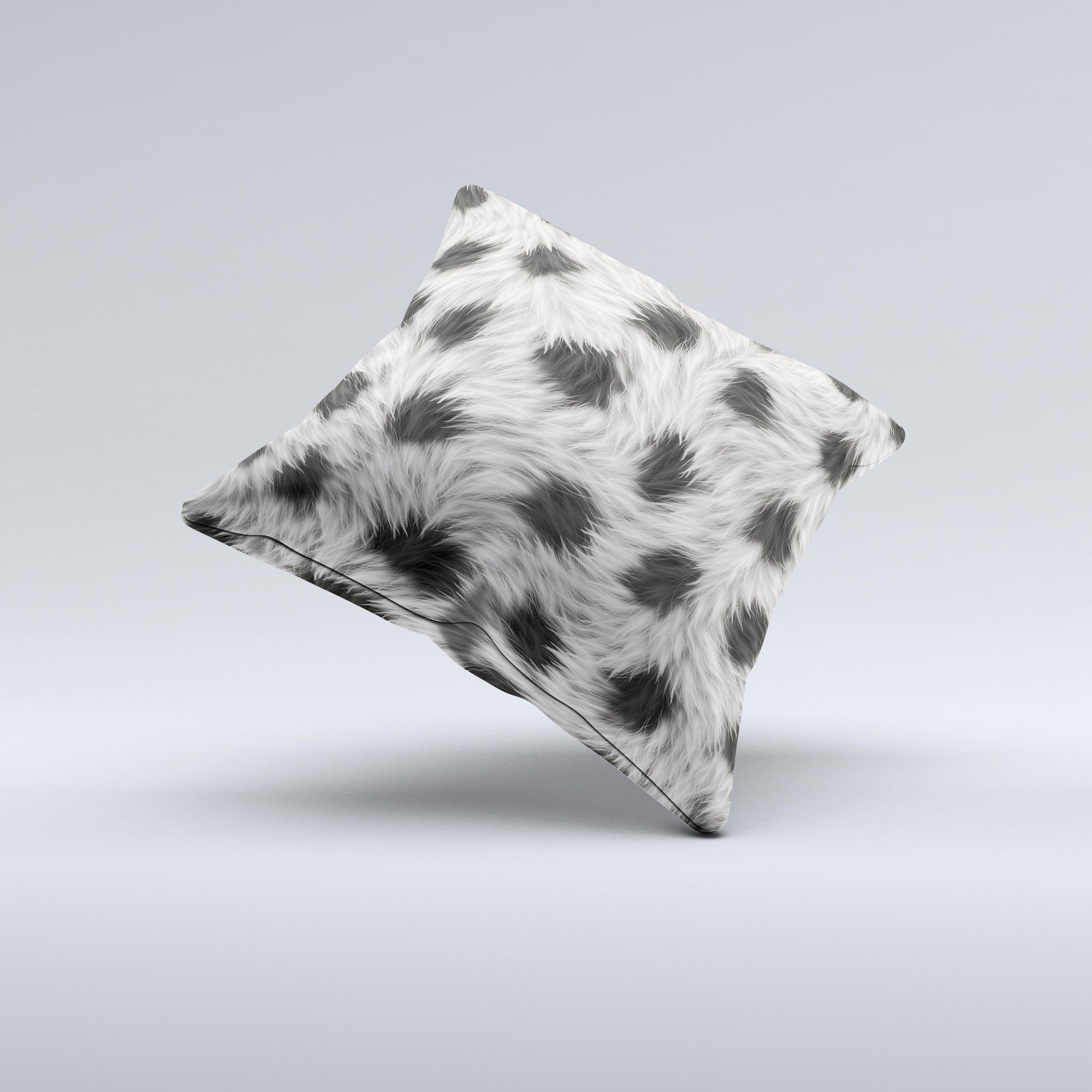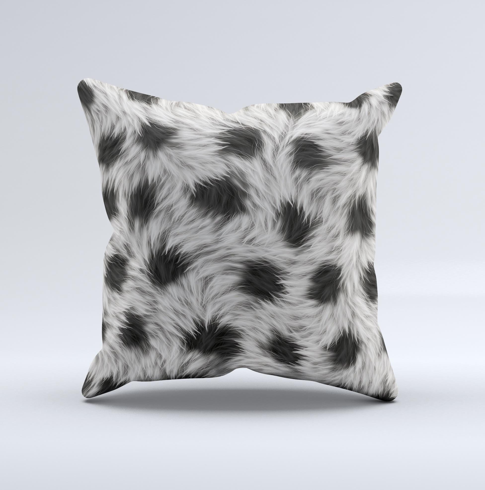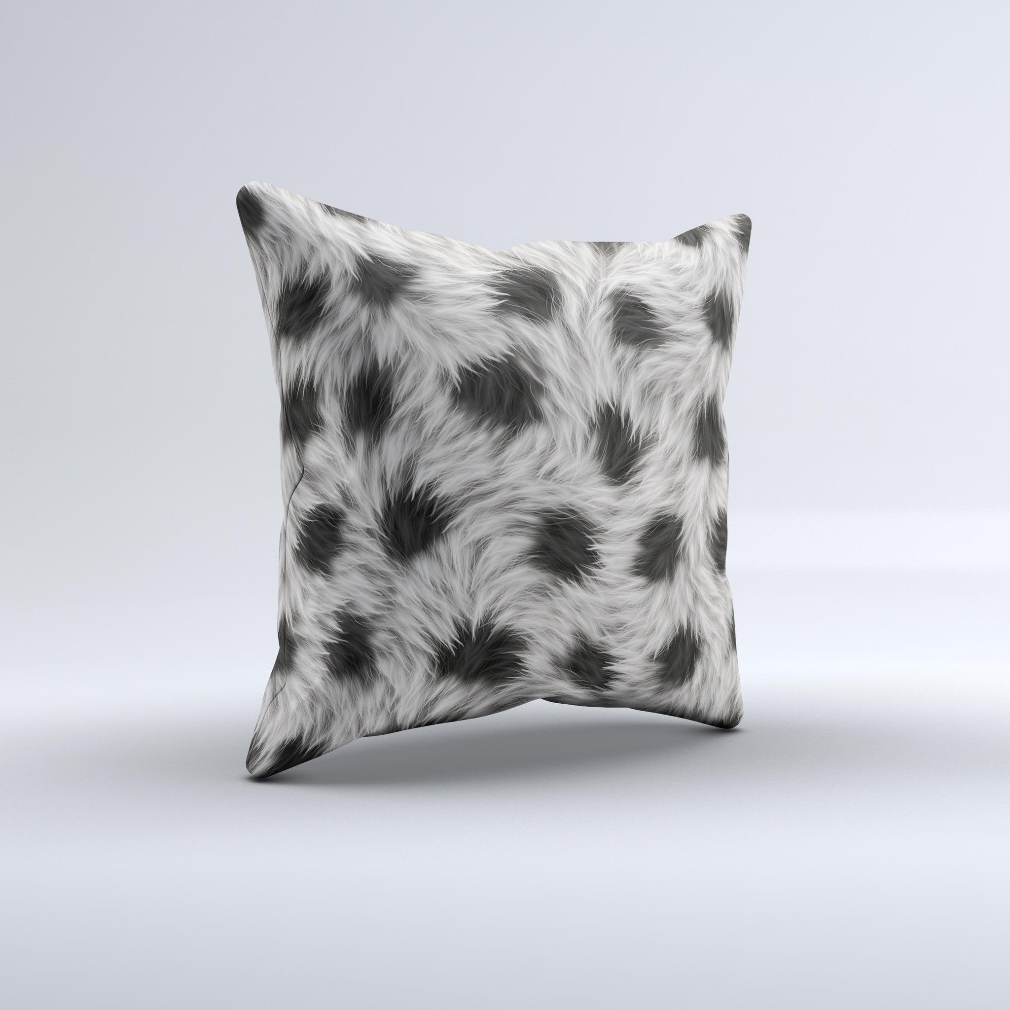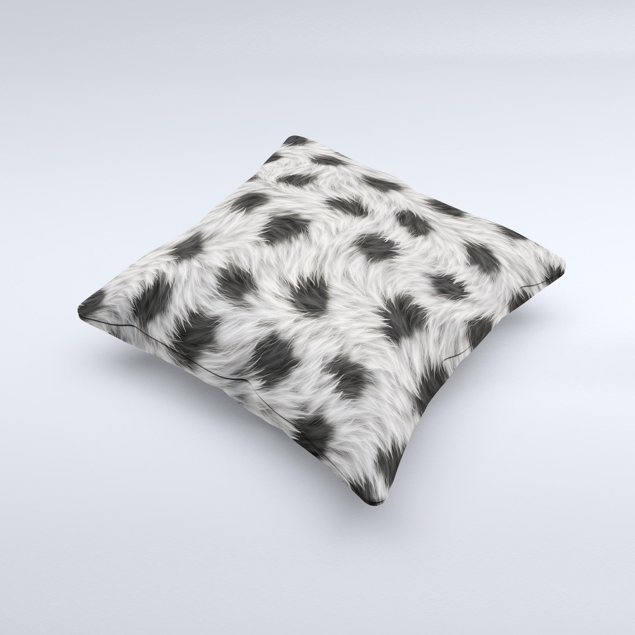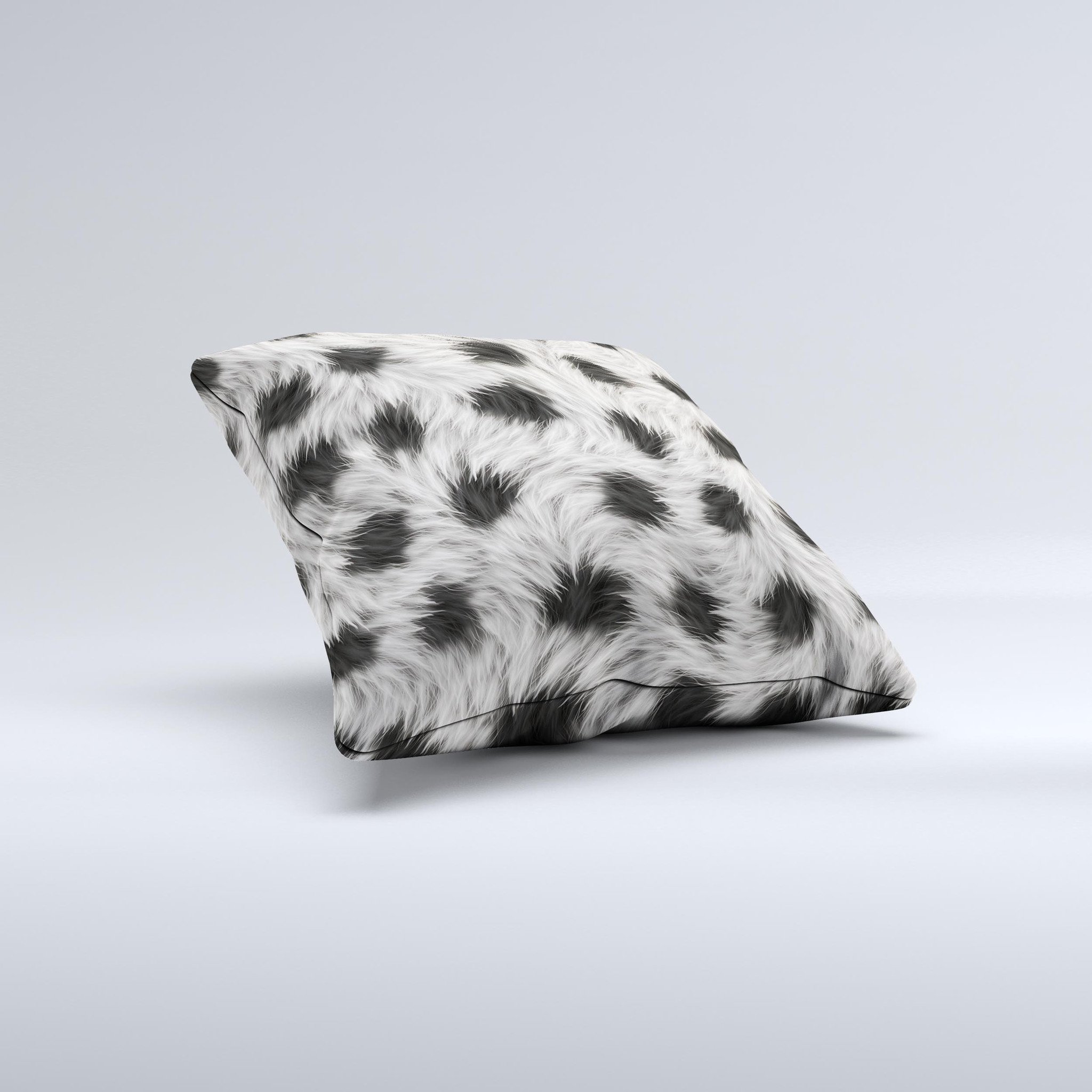 Dotted black and white animal fur decorative throw pillow, handcrafted with unique ink-fuzed design, showcasing high-quality fabric and filling.